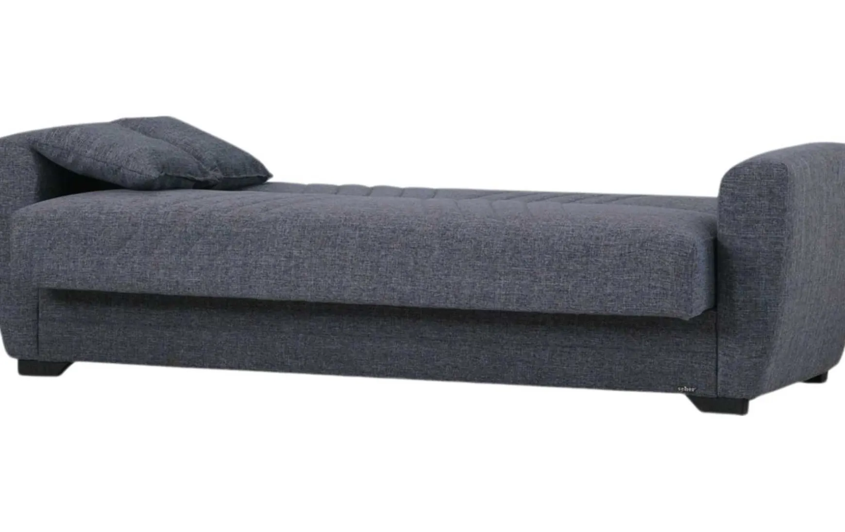 Modernes 3-Sitzer Sofa in Grau mit Kipp- und Liegefunktion sowie praktischem Stauraum. Inklusive 2 Zierkissen für zusätzlichen Komfort. Bequeme Federkernpolsterung in Sitz und Rücken, stabiler Stoffbezug und schwarze Kunststofffüße. Großzügige Liegefläche von ca. 108 x 190 cm, vormontiert geliefert – ideal als komfortables Sofa und funktionales Schlafsofa.