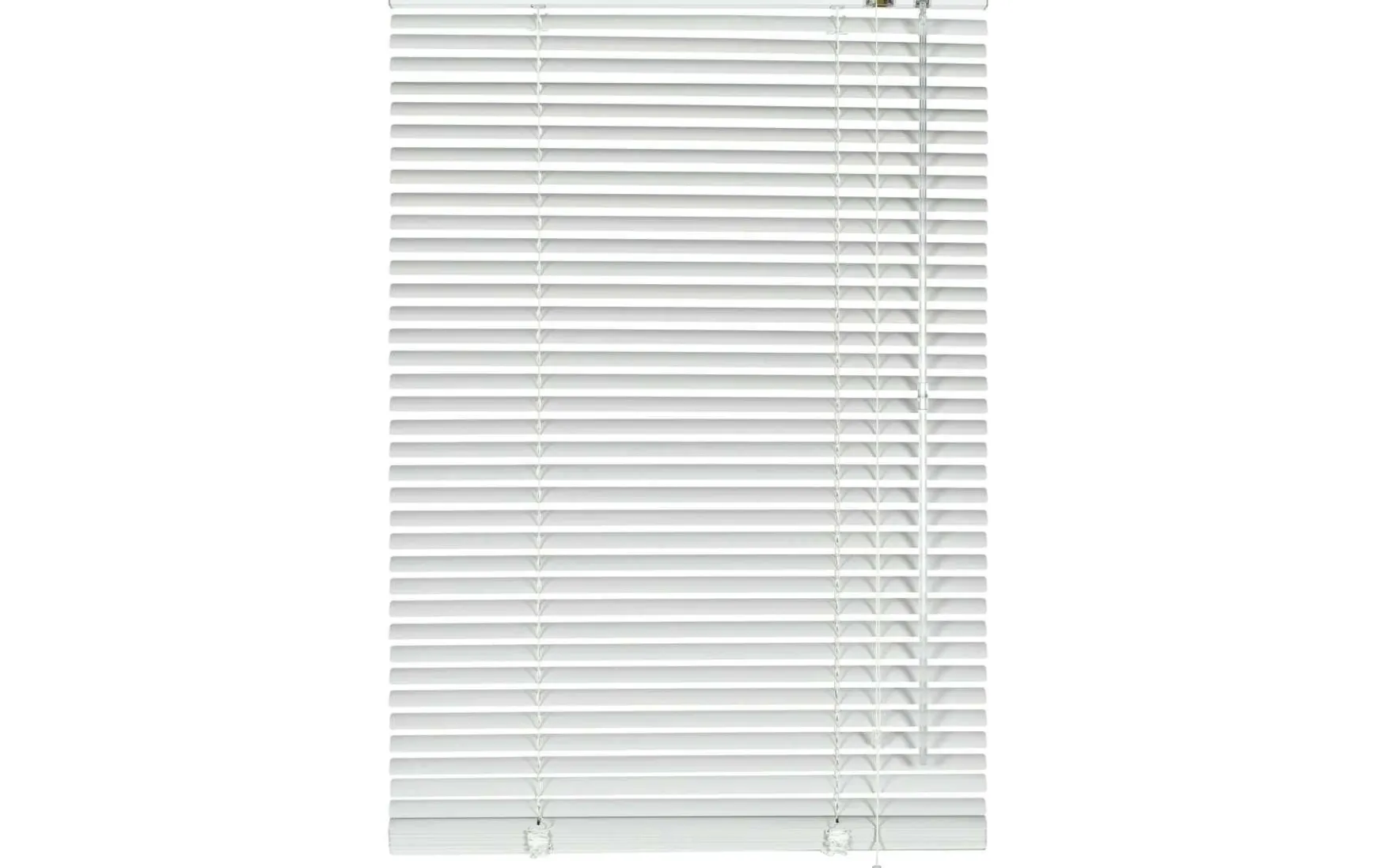 Die Aluminium-Jalousie ist aus einer Ober- und einer Unterschiene aus Stahl sowie Aluminium-Lamellen gefertigt. Die Breite der einzelnen Lamellen