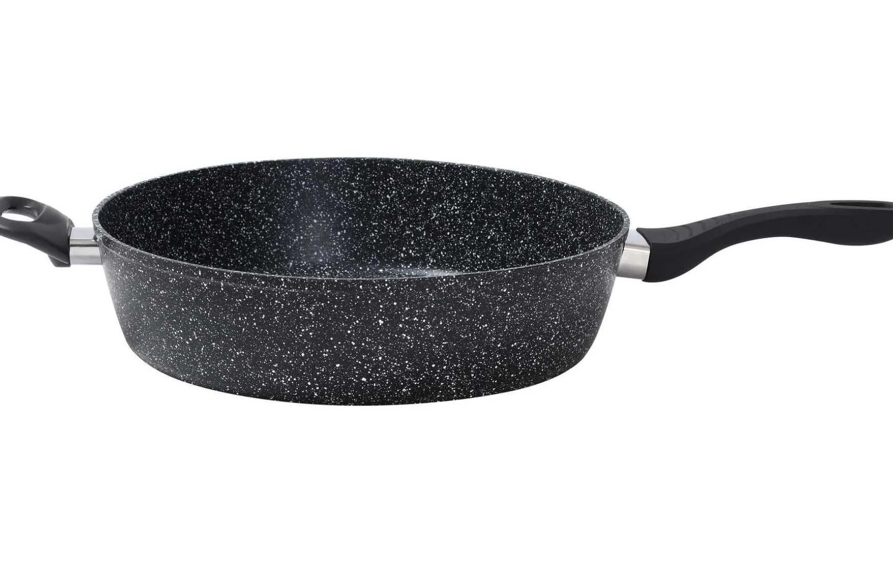 Der Soft-Touch-Griff liegt besonders angenehm in der Hand. Durch die Antihaftbeschichtung läßt sich die Pfanne leicht reinigen, auch in der Spülmaschine. Die Pfanne ist induktionsgeeignet. Der Stone-Look mit weißen Sprenkeln auf schwarzem Grund sorgt innen wie außen für ein modernes Aussehen.