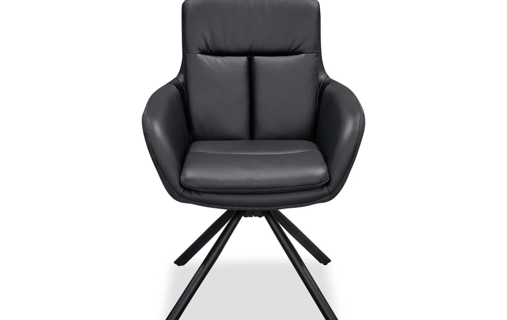 Mit seinen harmonischen Proportionen von ca. 63 × 90 × 65 cm und einer Sitzhöhe von ca. 51 cm bietet der Stuhl eine entspannte Sitzposition. Die komfortablen Armlehnen laden zum Zurücklehnen ein, während das schwarz pulverbeschichtete Metallgestell Stabilität und moderne Leichtigkeit ausstrahlt. Besonders praktisch: Der Stuhl ist 360 Grad drehbar und verfügt über eine Auto-Return-Funktion, die ihn nach dem Aufstehen automatisch in seine Ausgangsposition zurückführt – elegant, leise und komfortabel.