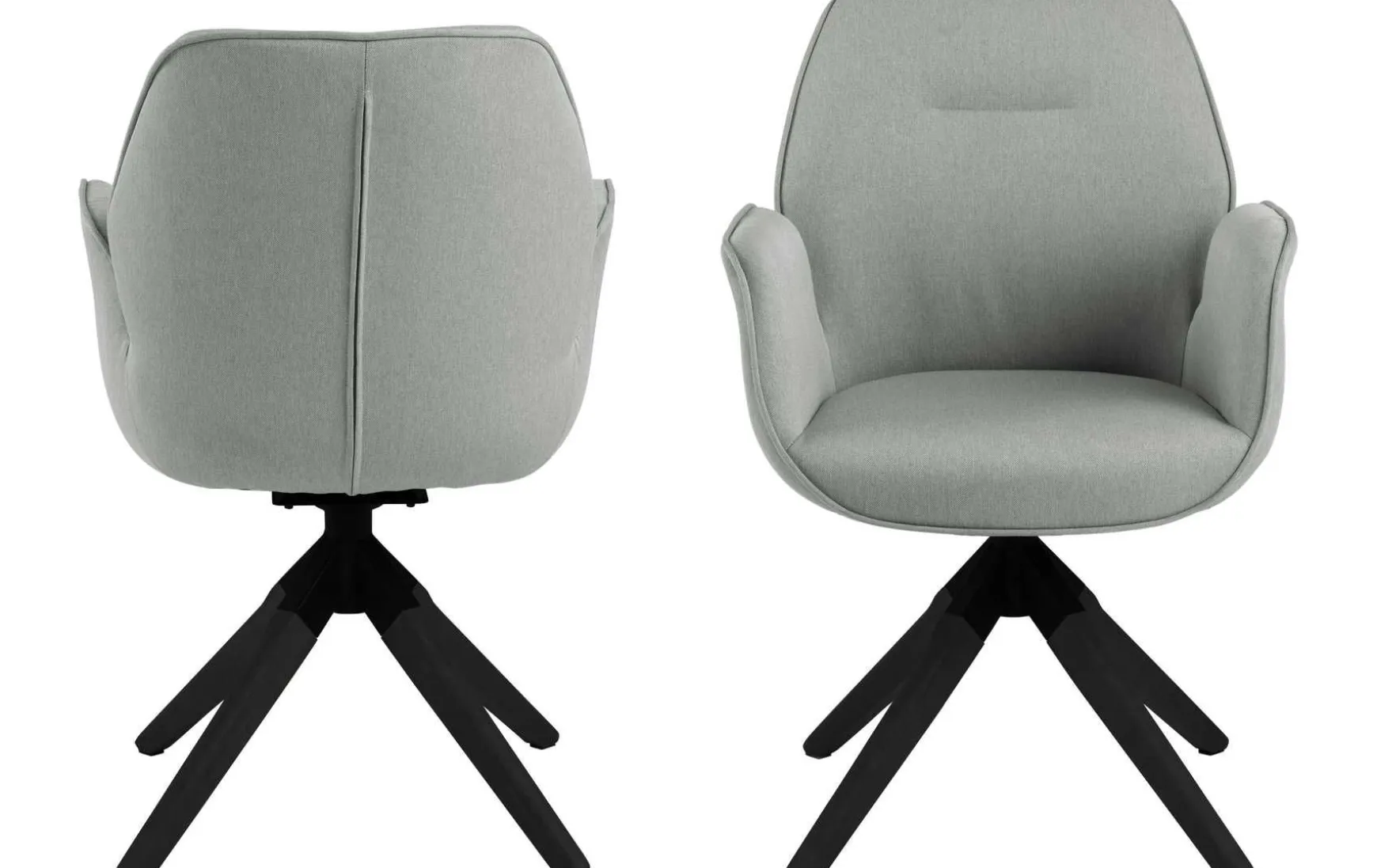 Dieser moderne Armlehnstuhl in elegantem Hellgrau verbindet stilvolles Design mit hohem Sitzkomfort. Der hochwertige Stoffbezug in hellem Grau sorgt für eine freundliche, zeitlose Optik und lässt sich vielseitig kombinieren. Das schwarz lackierte Holzgestell bildet einen edlen Kontrast und verleiht dem Stuhl Stabilität sowie eine hochwertige Ausstrahlung. Dank der praktischen Drehfunktion bietet der Armlehnstuhl zusätzliche Flexibilität und Komfort – ideal für Esszimmer, Wohnbereich oder Homeoffice. Mit einer Belastbarkeit von bis zu 120 kg überzeugt der Stuhl durch seine robuste Verarbeitung und Alltagstauglichkeit.