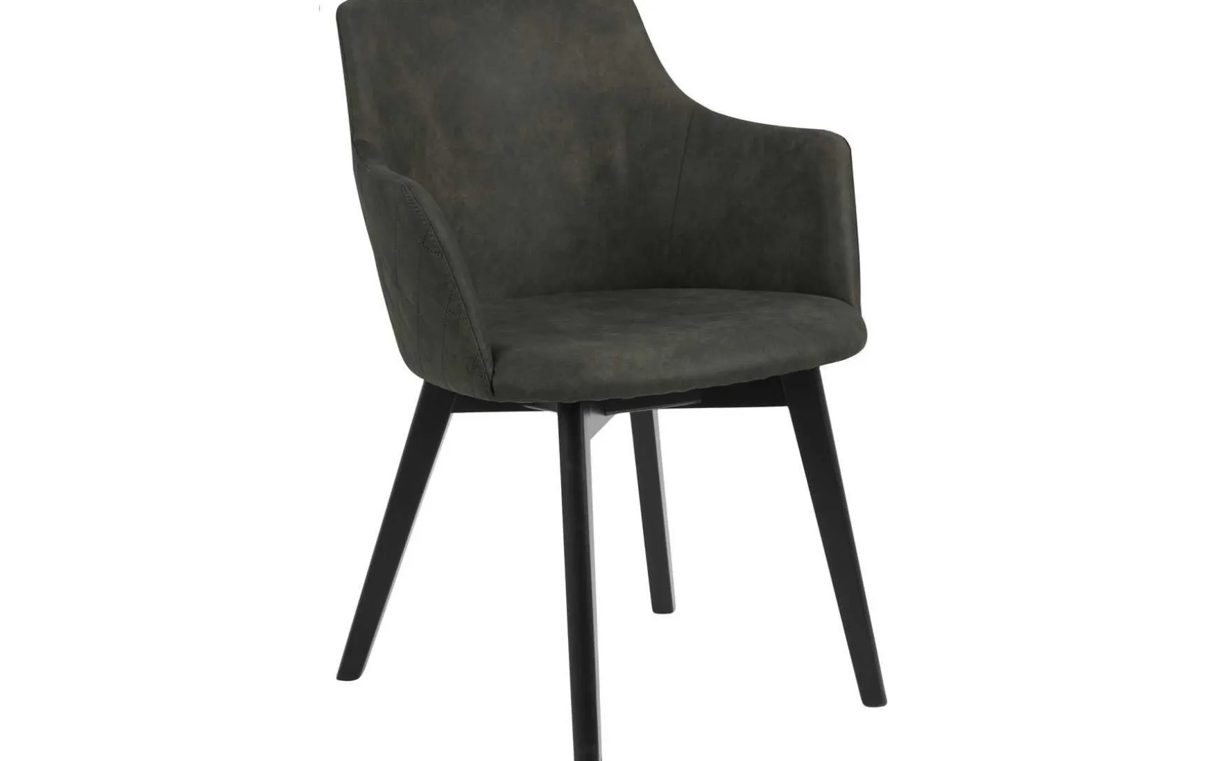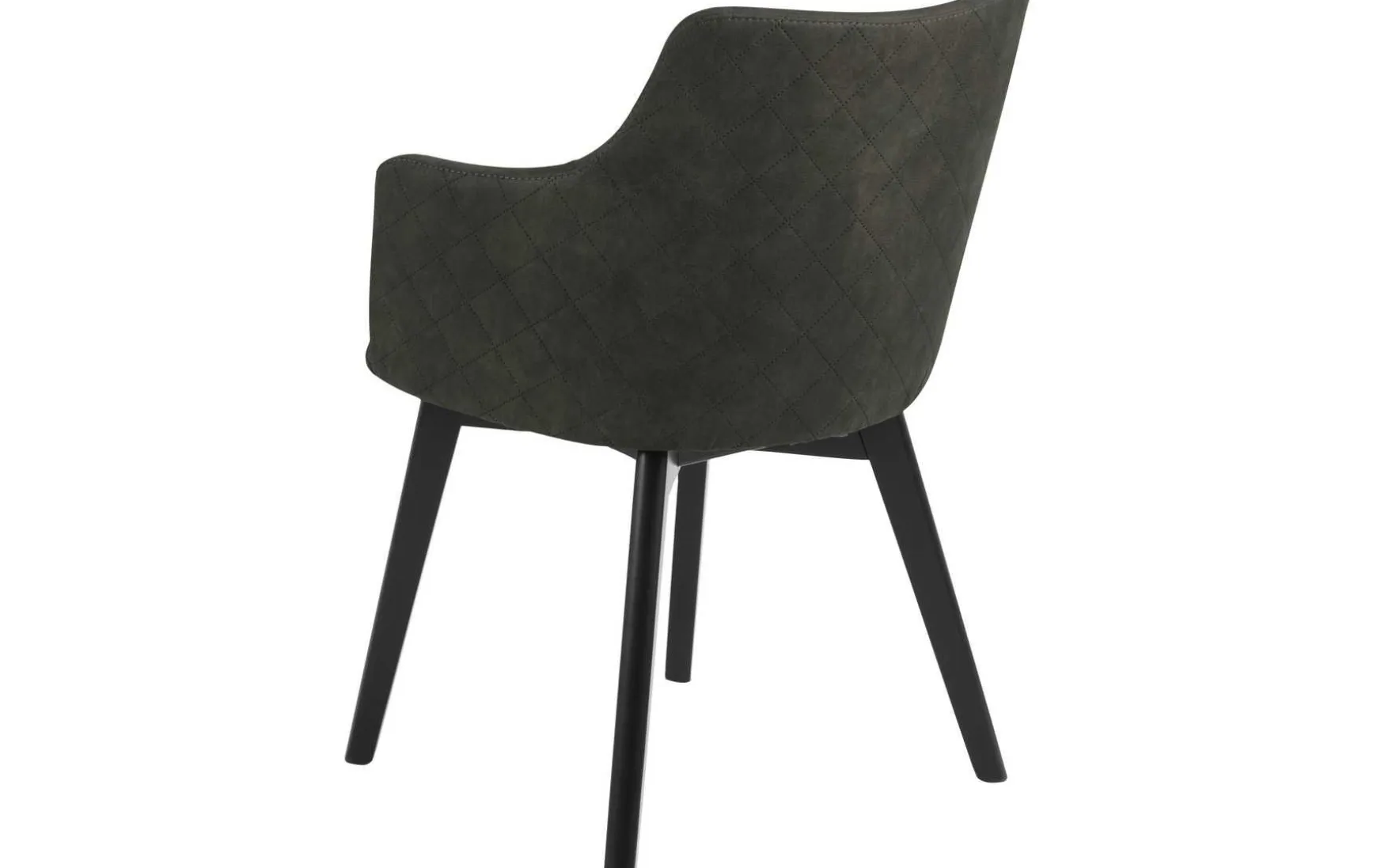 Moderner Armlehnstuhl passt in jede Esszimmer! Sein pflegeleichter Stoffbezug in Olivgrün in Kombination mit seinem Schwarzen Gestell, macht ihn zu einem wahren Eye-Catcher.