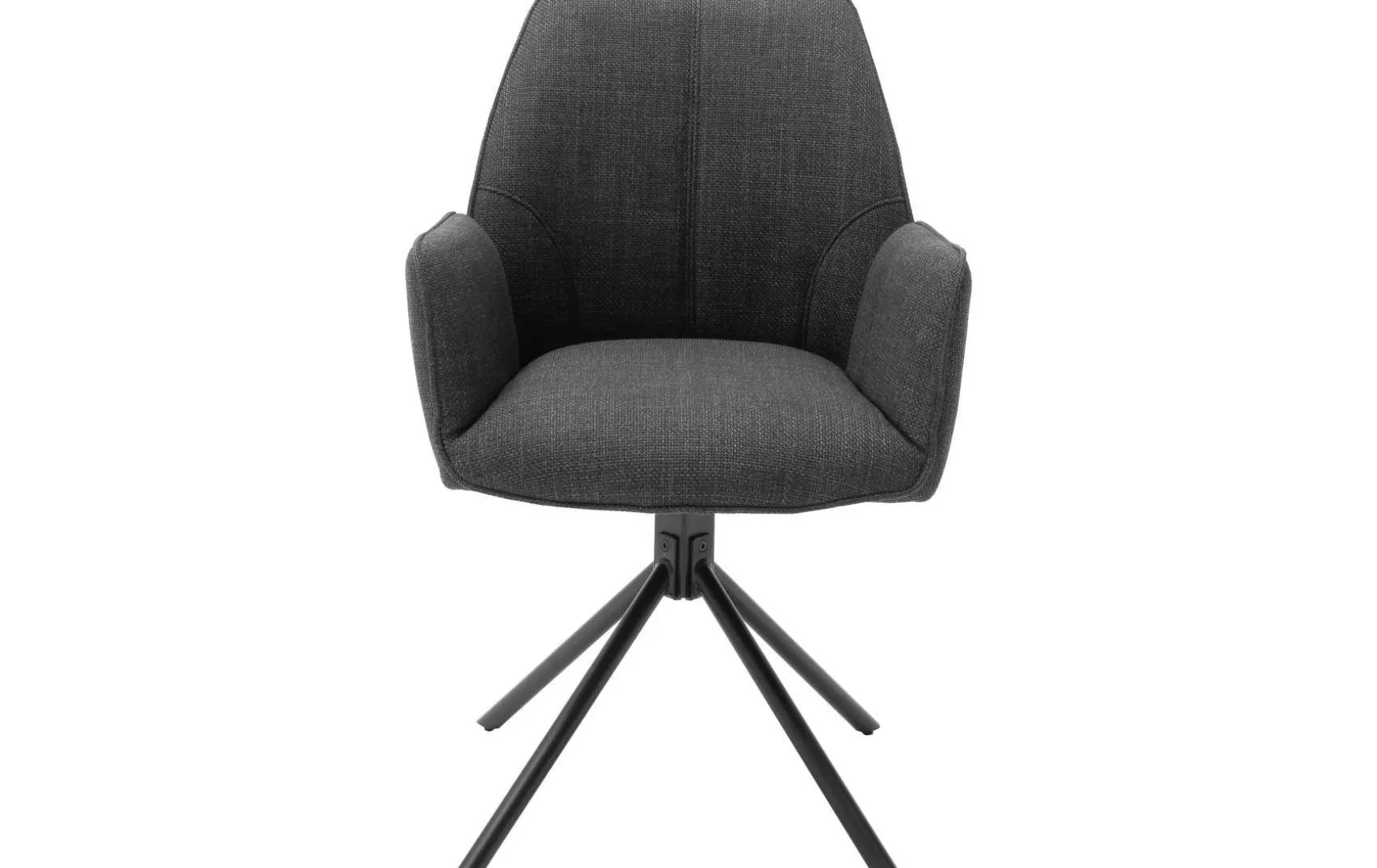 Dieser moderne Esszimmerstuhl vereint Komfort, Funktion und stilvolles Design. Mit weichem Sitzkomfort, Armlehnen und einem hochwertigen Stoffbezug in Anthrazit lädt er zu entspannten Stunden am Esstisch ein. Besonders praktisch: Der Stuhl ist 180 Grad drehbar und verfügt über eine Rückstell-Nivellierung, sodass er nach dem Aufstehen automatisch in seine Ausgangsposition zurückkehrt. Das stabile Metallgestell in matter Optik sorgt für Langlebigkeit und Stabilität. Mit einer Belastbarkeit von bis zu 120 kg ist der Stuhl robust und alltagstauglich – perfekt für modernes Wohnen.