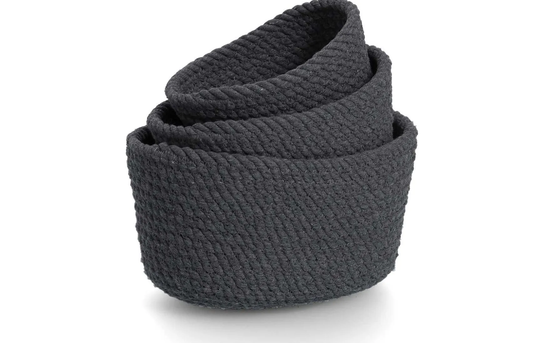 Für jeden Anlass den richtigen Korb zur Hand – mit diesem 3-teiligen Set ist das kein Problem. Die stabilen, in Flechtoptik verarbeiteten Aufbewahrungskörbe aus Baumwolle erhältst Du in drei verschiedenen Größen: 24 × 16 × 12 cm, 19 × 14 × 10 cm und 16 × 10 × 7 cm. Darin lassen sich Gästehandtücher und Toilettenpapierrollen ebenso unterbringen wie Accessoires und Spielsachen.