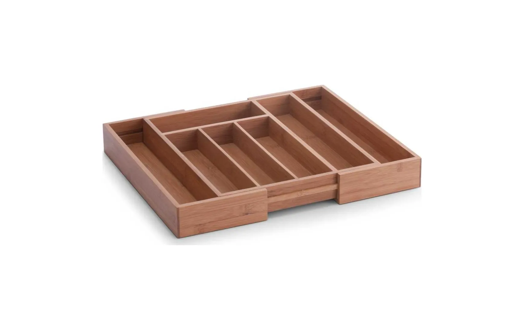 Dieser hochwertige ausziehbare Besteckkasten aus edlem Bambus verfügt über 5 – 7 getrennte Fächer und passt sich jeder handelsüblichen Schublade perfekt an. Für eine extra lange Lebensdauer ist der Besteckkasten mit einer schonenden Lackierung versehen, die ihn noch pflegeleichter macht.
