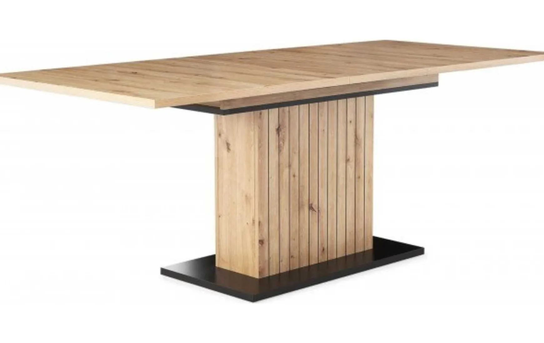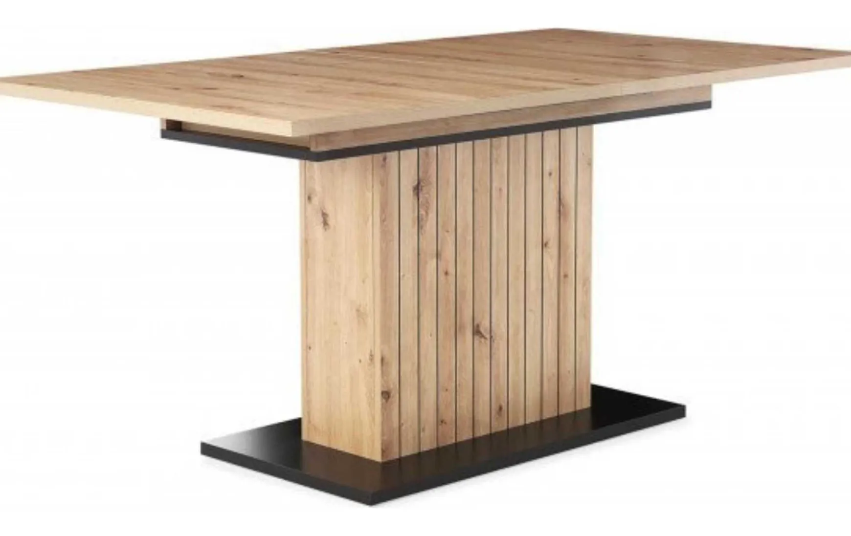 Dieser elegante Auszugstisch kombiniert modernes Design mit solider Funktion – perfekt, wenn Stil und Alltagstauglichkeit Hand in Hand gehen sollen. Die Tischplatte besteht aus Spanplatte in Artisan-Dekor und liefert eine pflegeleichte, attraktive Oberfläche in trendiger Holzoptik. Unterstützt wird sie von einemSäulenfuß mit schwarzer Bodenplatte, das Stabilität und klare Linien verspricht.