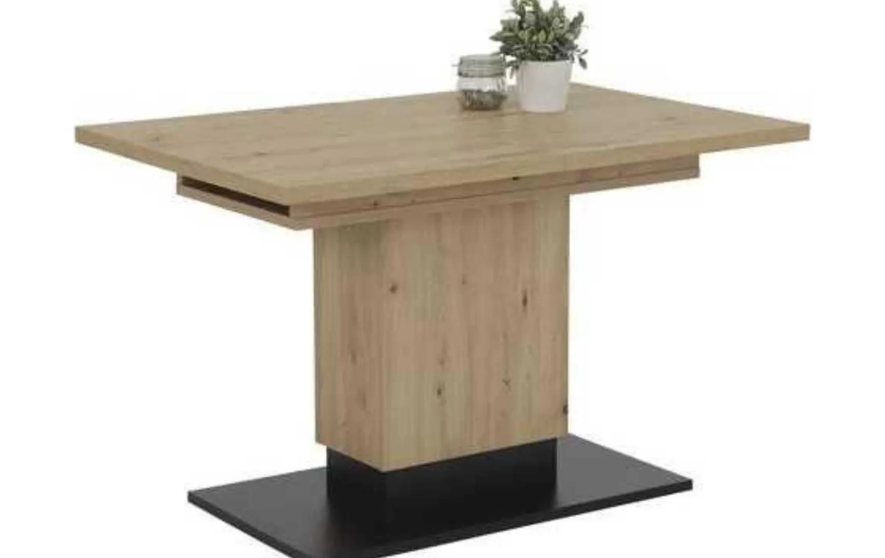 Der Esstisch in Artisan Eiche überzeugt durch Funktionalität und modernes Design. Dank des praktischen Synchronauszugs mit Arretierung lässt sich die Tischplatte mühelos von ca. 120 cm auf bis zu 180 cm verlängern. Zwei innenliegende Einlegeplatten sorgen für flexible Erweiterungsmöglichkeiten und machen den Tisch ideal für Gäste und gesellige Runden. Mit einer Höhe von ca. 76 cm und einer Tiefe von ca. 80 cm bietet der rechteckige Esstisch komfortabel Platz im Essbereich. Die warme Optik in Artisan Eiche wird durch das Gestell in Artisan Eiche/Schwarz stilvoll ergänzt. Der Tisch ist pflegeleicht, lässt sich einfach mit einem feuchten Tuch reinigen und wird vormontiert geliefert.
