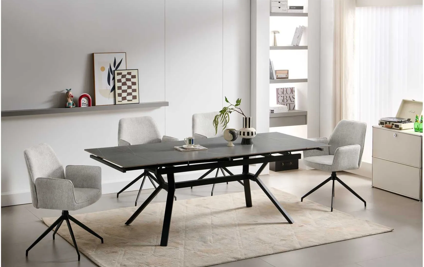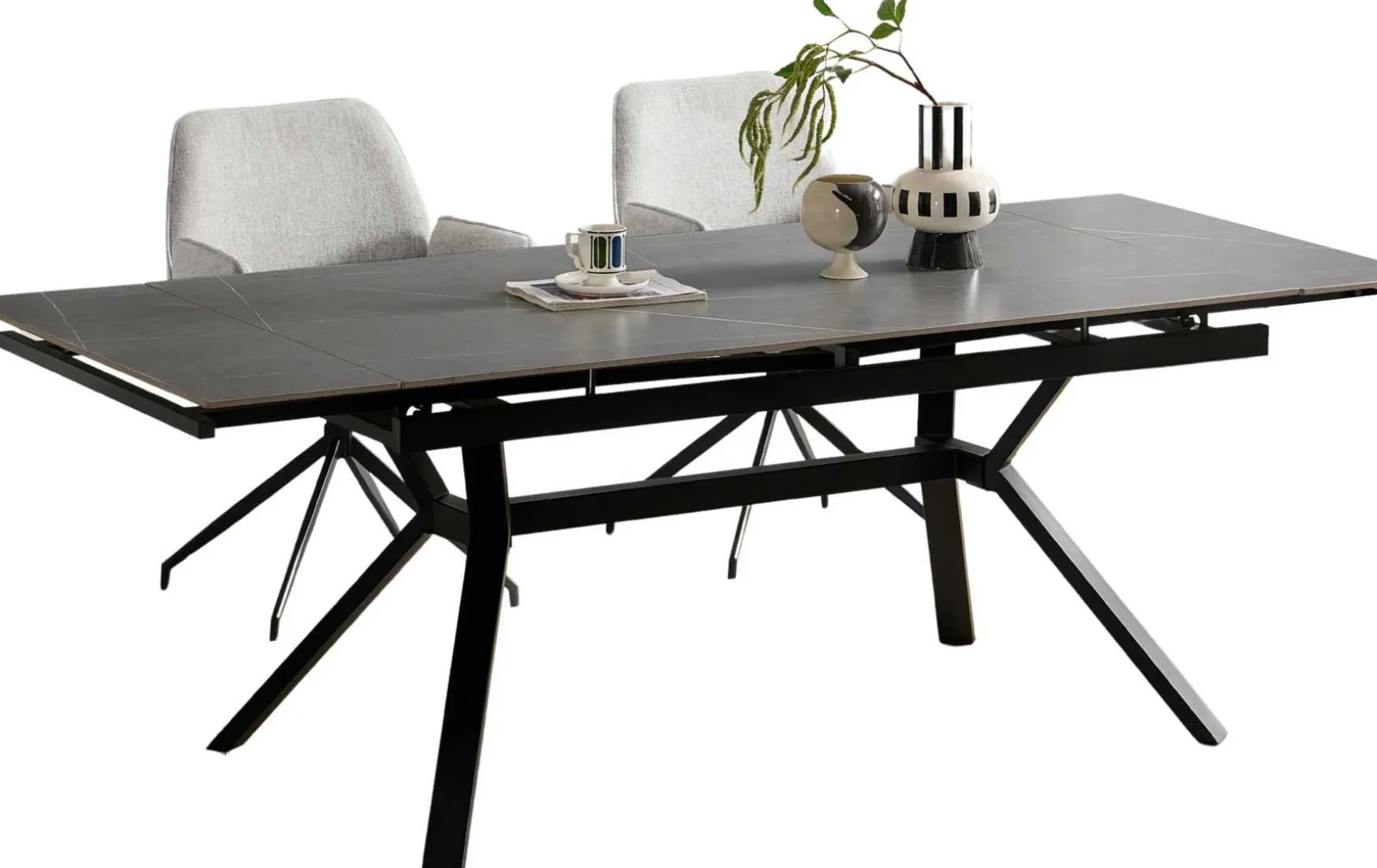 Edles Design trifft auf Alltagstauglichkeit: Dieser Esstisch überzeugt mit einer Keramikplatte in moderner Marmoroptik und einem robusten schwarz pulverbeschichteten Metallgestell. Mit einer Größe von 160 × 90 cm bietet er reichlich Platz, lässt sich aber dank der Auszugsfunktion auf 220 cm erweitern – ideal für Gäste und Familienfeiern. Das macht ihn zum flexiblen Mittelpunkt im Esszimmer. Die Oberfläche ist nicht nur optisch ein Highlight, sondern auch besonders pflegeleicht und widerstandsfähig. Die Kombination aus klaren Linien, hochwertiger Materialanmutung und praktischer Funktion macht diesen Tisch zu einem echten Hingucker. Und obwohl er aussieht wie ein Designerstück, gehört er preislich zu unseren günstigsten Auszugstischen. Ein stilvoller Beweis dafür, dass Eleganz nicht teuer sein muss.