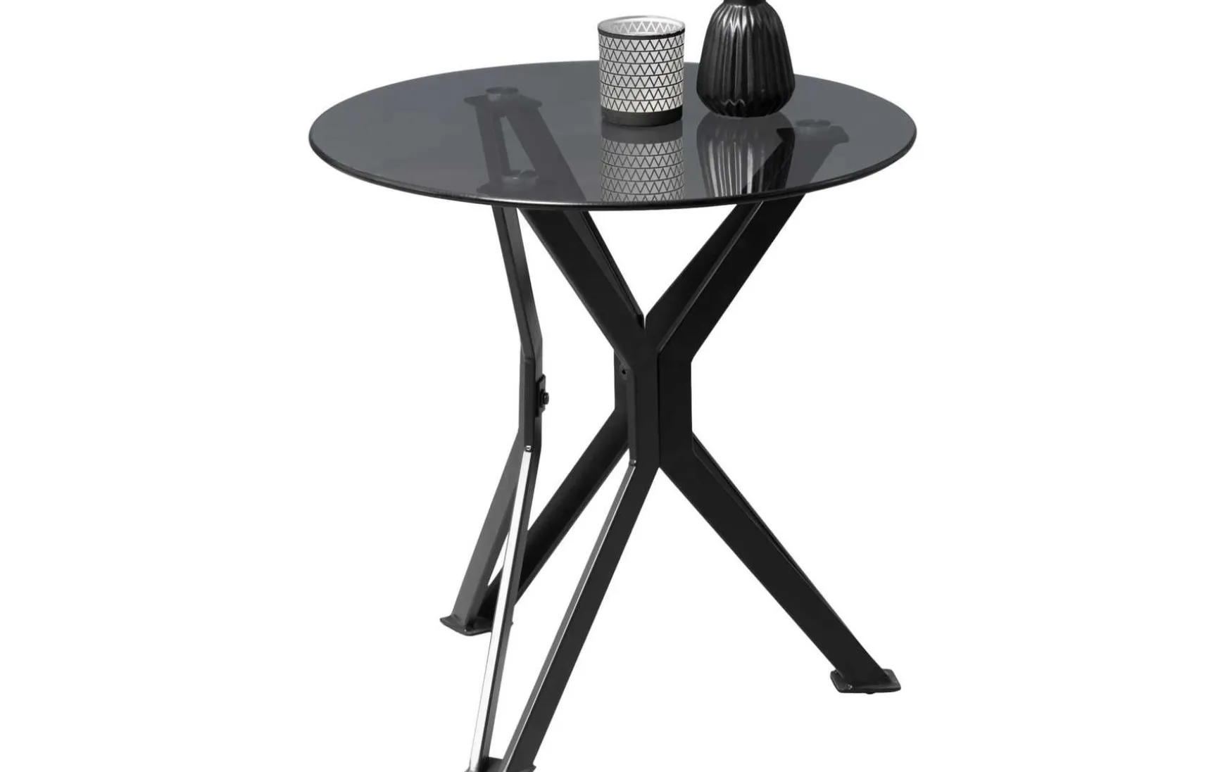 Dieser elegante Beistelltisch überzeugt durch sein modernes Design und hochwertige Materialien. Die runde Tischplatte aus grauem Sicherheitsglas verleiht dem Tisch eine leichte, edle Optik und sorgt gleichzeitig für Stabilität und Sicherheit im Alltag. Das schwarze Metallgestell bildet einen stilvollen Kontrast und garantiert einen sicheren Stand. Mit einem Durchmesser und einer Höhe von jeweils ca. 50 cm eignet sich der Beistelltisch ideal als praktische Ablage neben Sofa oder Sessel und fügt sich harmonisch in moderne Wohnräume ein. Online reservierbar und perfekt für die Selbstabholung.