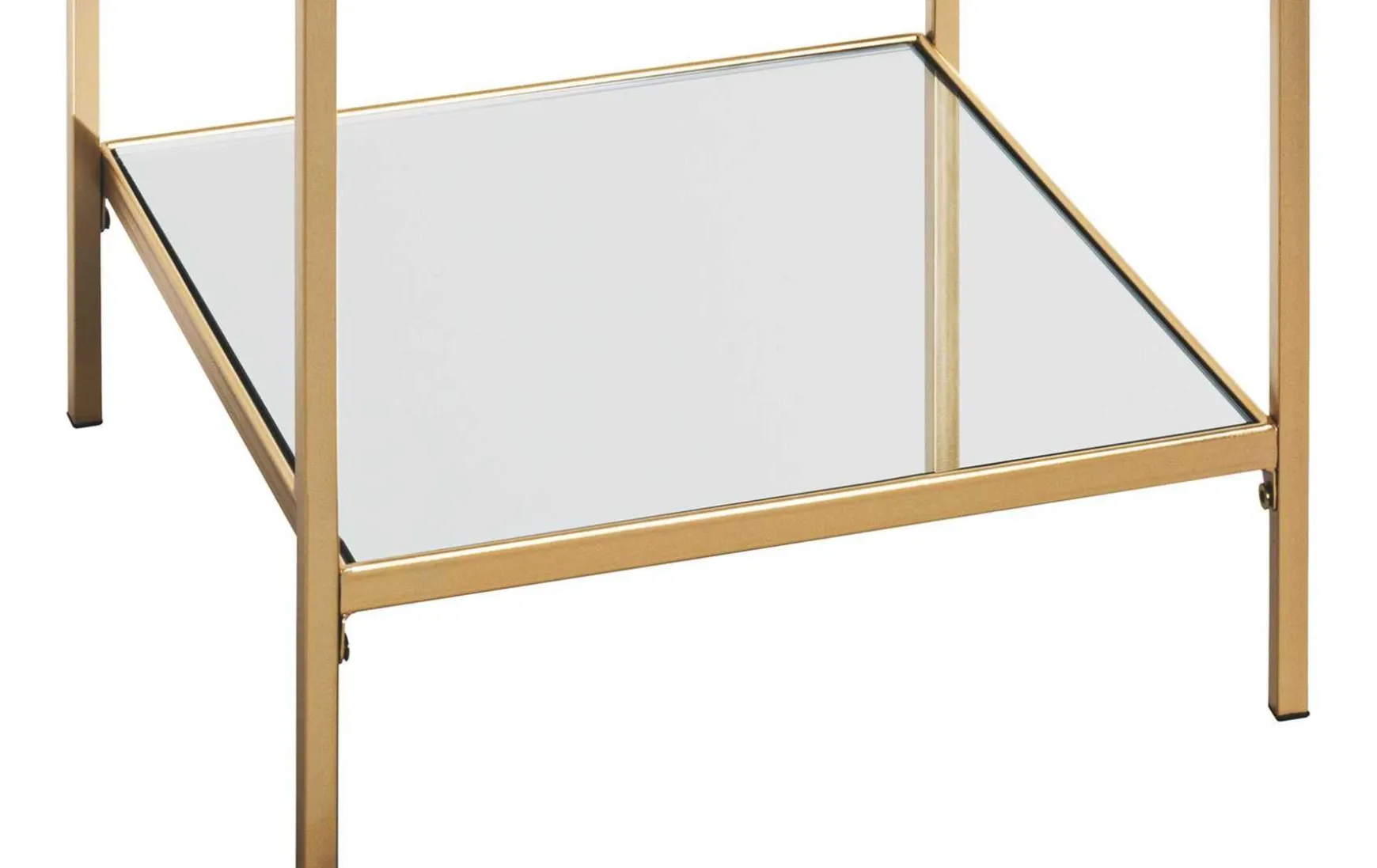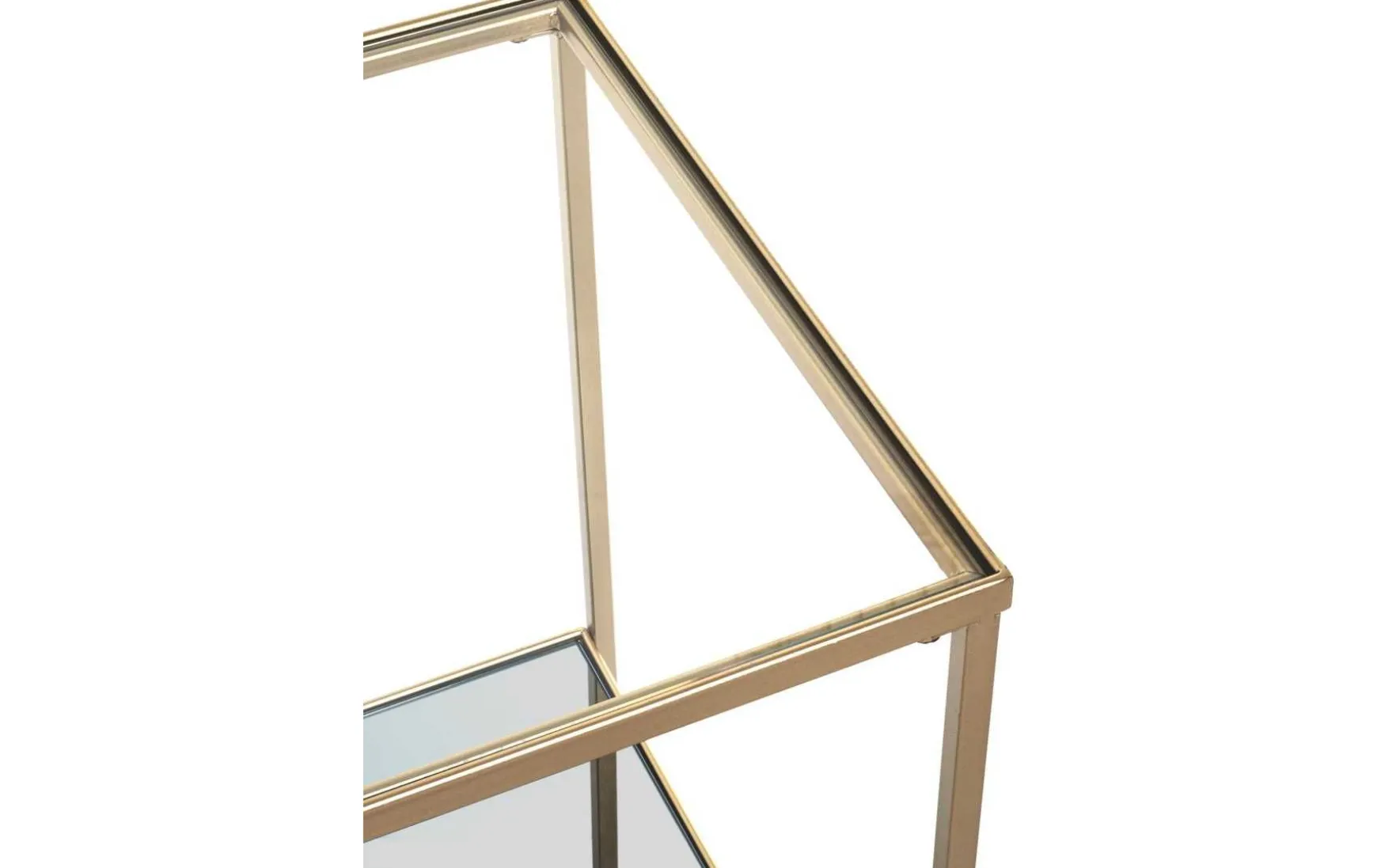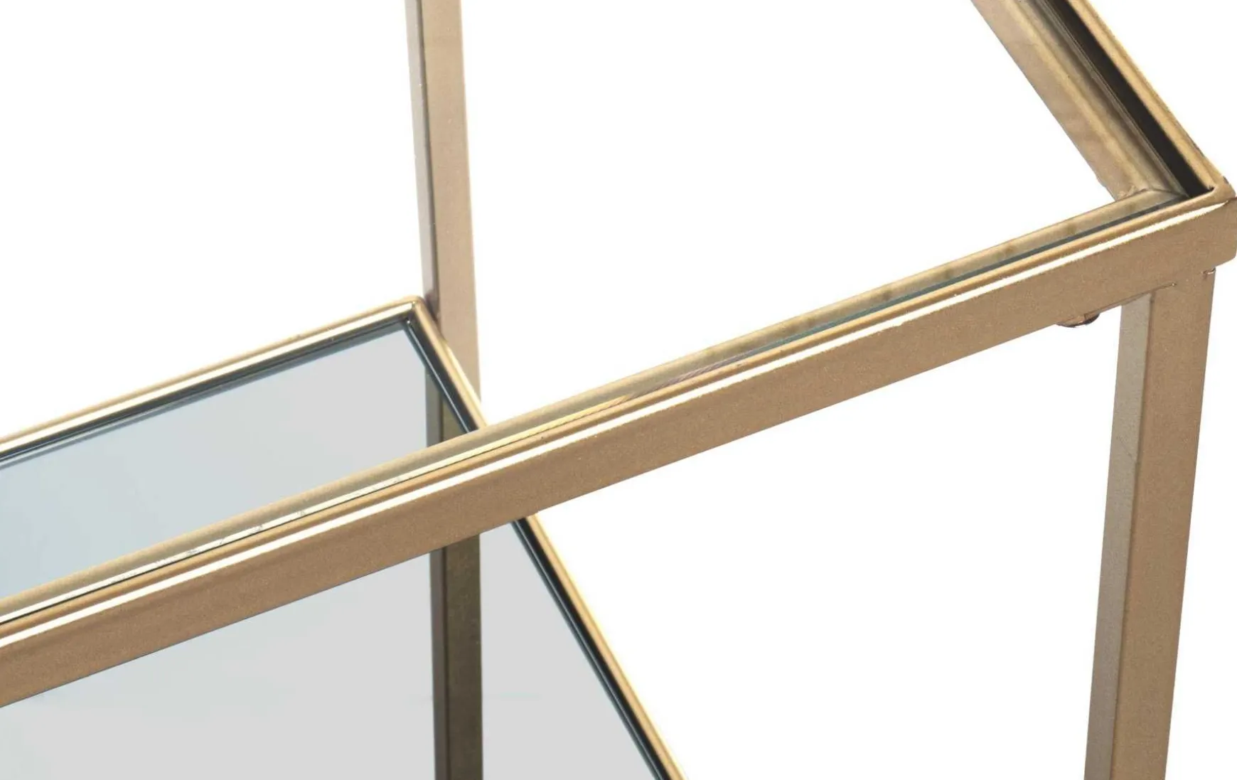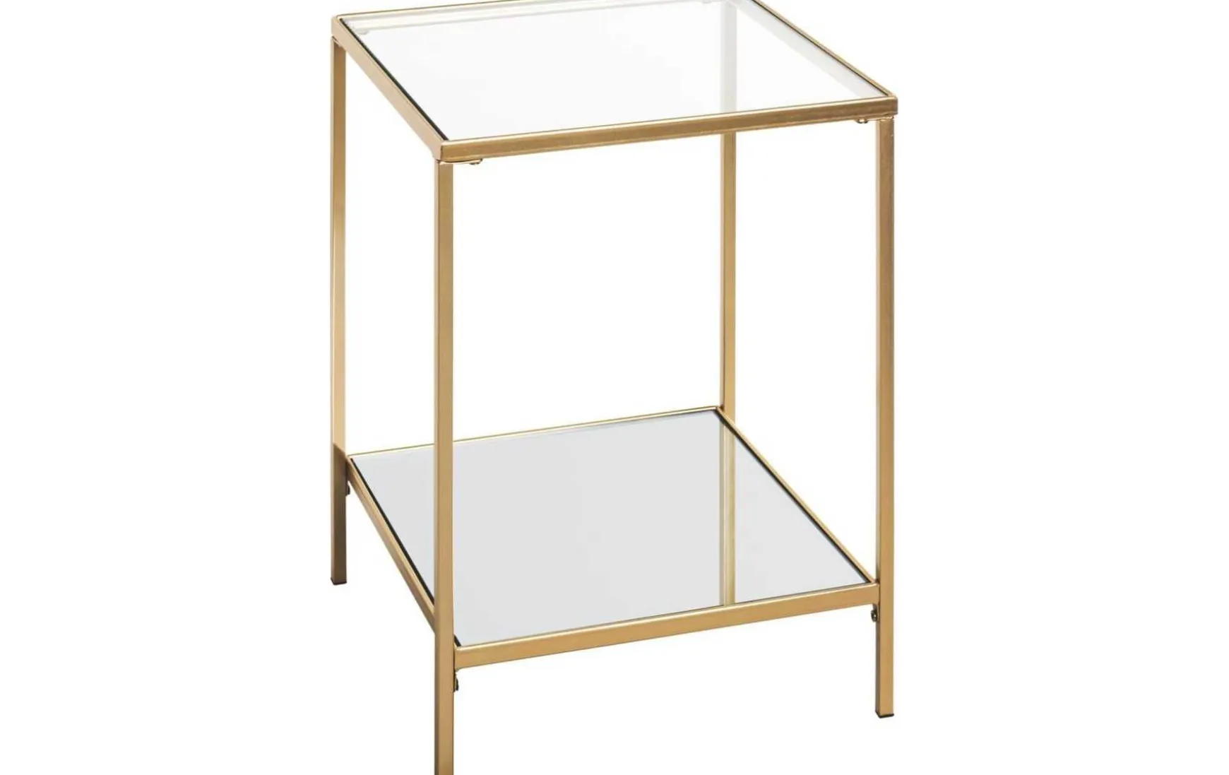 Dieser moderne Beistelltisch überzeugt mit einer quadratischen Tischplatte aus klarem Sicherheitsglas und einem eleganten Gestell in Messingfarben. Mit kompakten Maßen von ca. 39 × 39 × 55 cm eignet er sich ideal als stilvolle Ablage neben Sofa oder Sessel. Dank der pflegeleichten Materialien aus Metall und Glas lässt sich der Tisch mühelos mit einem feuchten Tuch reinigen und wird zerlegt geliefert.