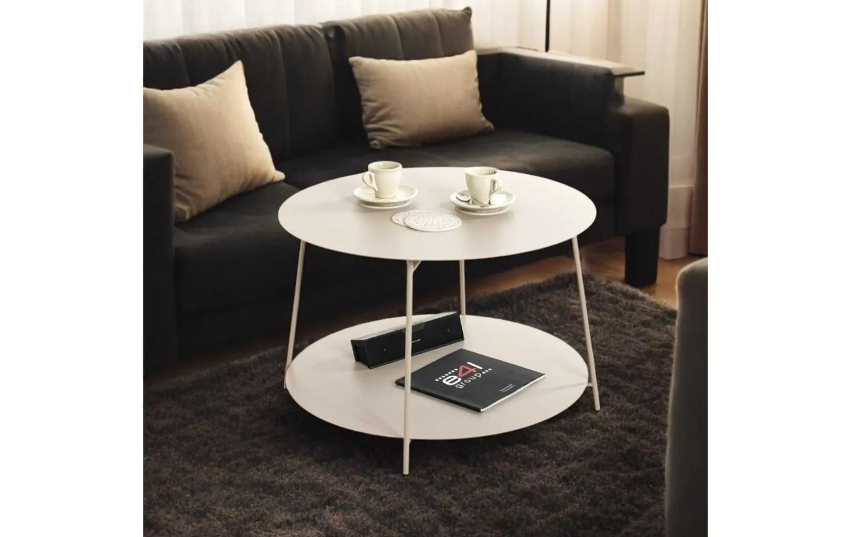 Dieser Beistelltisch in elegantem Kaschmirgrau überzeugt durch sein modernes Design und praktische Funktionalität. Mit zwei großzügigen Ablagen bietet er viel Stauraum für Bücher, Zeitschriften, Dekoration oder Alltagsgegenstände und sorgt gleichzeitig für Ordnung im Wohnbereich. Die dezente Farbgebung verleiht dem Tisch eine ruhige, stilvolle Ausstrahlung und lässt ihn mühelos mit verschiedenen Einrichtungsstilen kombinieren. Mit einem Durchmesser von ca. 65 cm und einer Höhe von ca. 40 cm eignet sich der Beistelltisch ideal als Sofa- oder Couchtisch-Ergänzung. Dank einer Belastbarkeit von bis zu 30 kg ist er stabil und alltagstauglich – perfekt für Wohnzimmer, Schlafzimmer oder Leseecken.