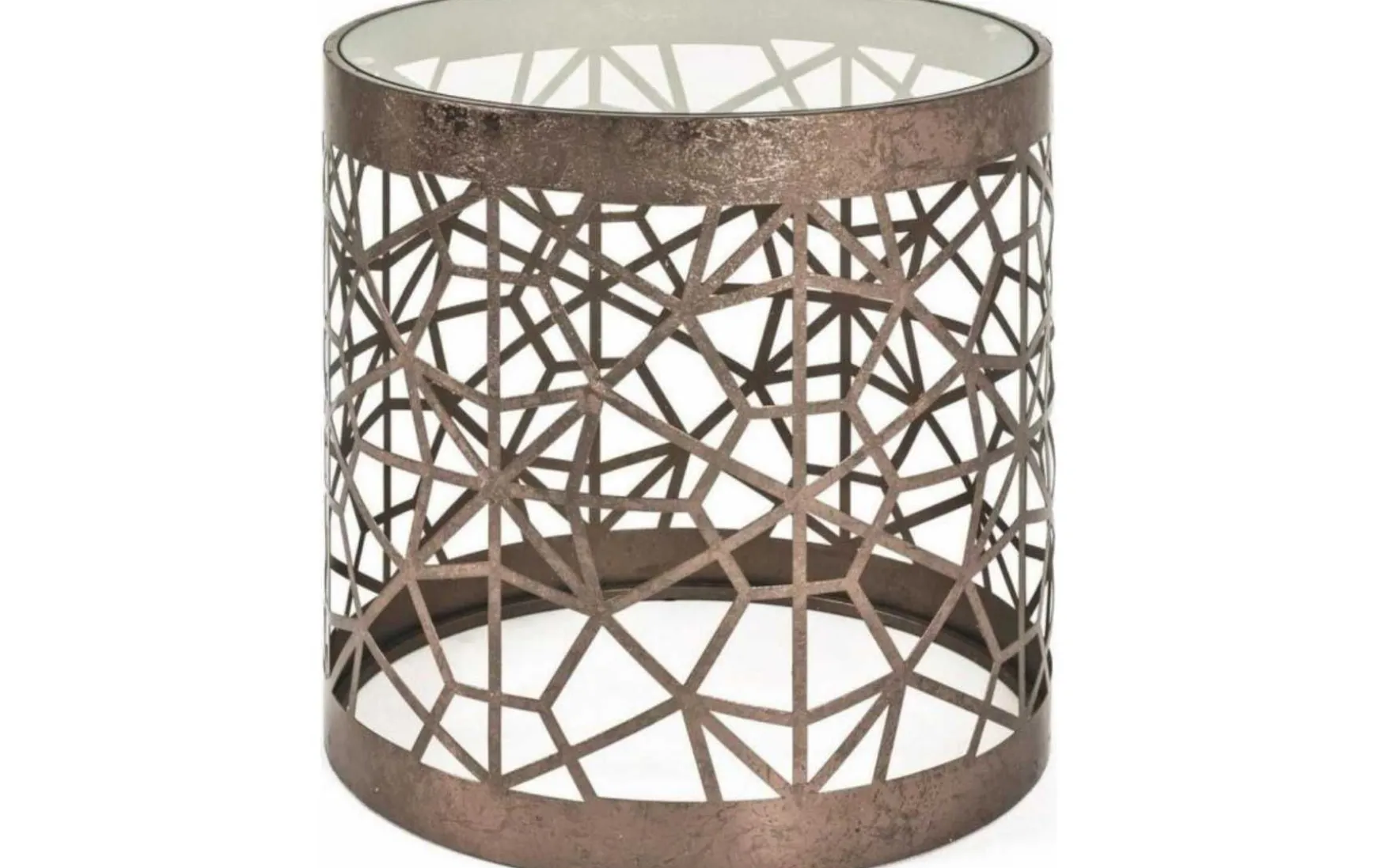 Ausgefallener Beistelltisch aus Metall, Tischplatte aus 8mm Sicherheitsglas.. Das tolle Muster in Antikbronze lackiert wirkt überraschend dekorativ. Passt zu jeder Wohnungseinrichtung und peppt den Wohnraum auf. Sieht gut aus, ist mit einer 8 mm dicken Glasplatte ausgestattet. Ob als Ablage neben der Couch oder als Nachtkonsole, im Eingangsbereich oder sonstigen Räumen, er passt überall hin eignet sich nicht nur als Ablage, sondern auch sehr gut für dekorative Objekte.