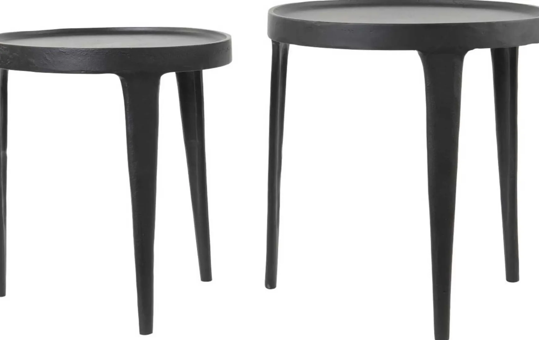 Mit diesem Beistelltisch Set holst du dir hochwertige Möbel in deinen Wohnraum. Die beiden Tische bestehen aus robustem Metall und zeichnen sich durch ihr modern-elegantes Design aus. Die größere Ausführung misst ca. 43×45,5cm (D/H), während die Maße des kleineren Modells ca. 37x41cm (D/H) betragen.