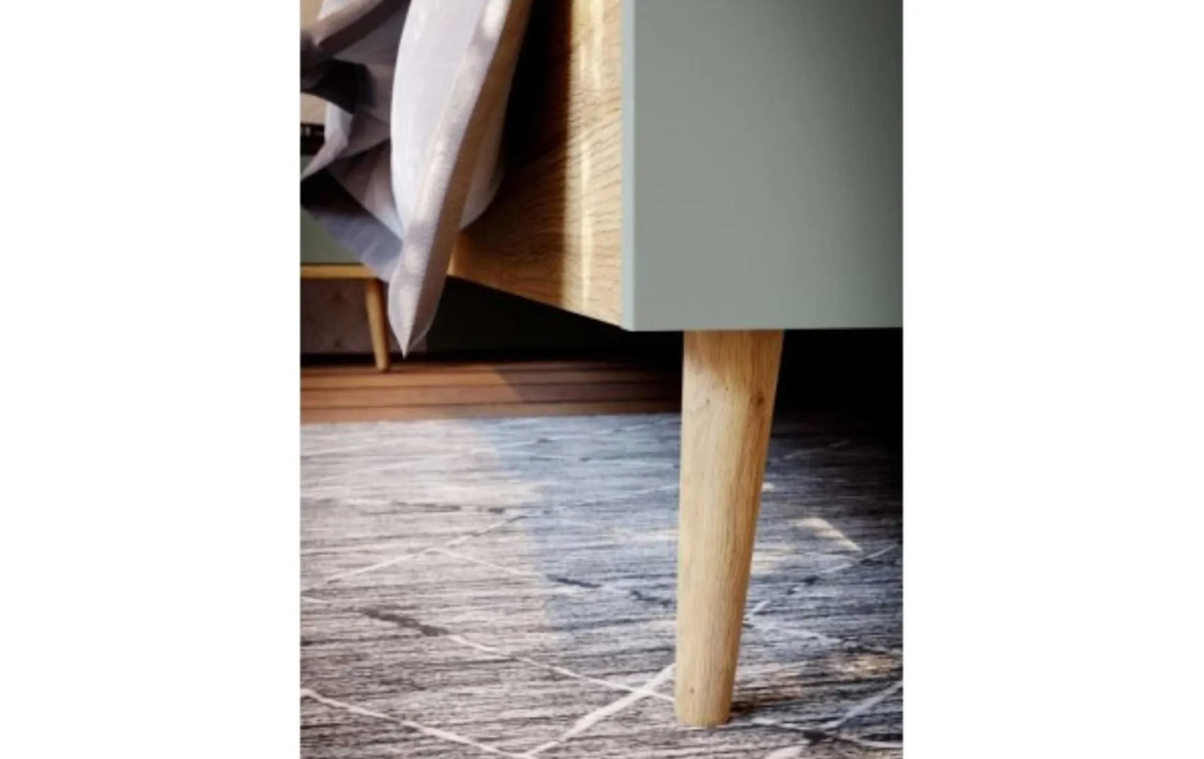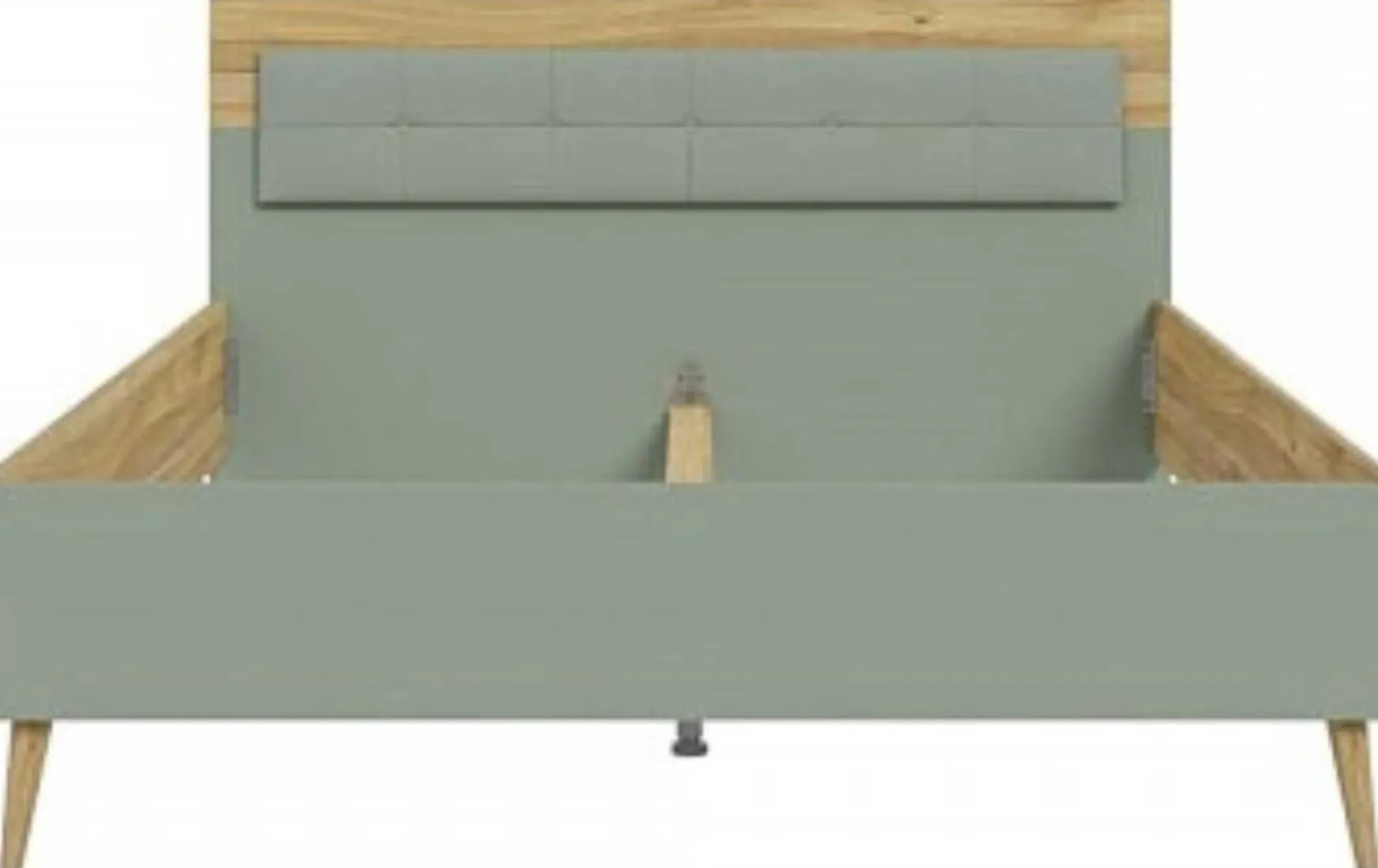 Modernes Doppelbett aus einem umfangreichen, grossen Typenprogramm in ganz neuer Farbe Mauvella Eiche abgesetzt mit dezentem Grün. Moderner, skandinavischer Look mit hohen Füssen und weichem Polsterkopfteil. Ergänzend gibts zu unserem Programm die passenden Betten, weitere Kleiderschränke, Nachtkommoden und Kommoden.