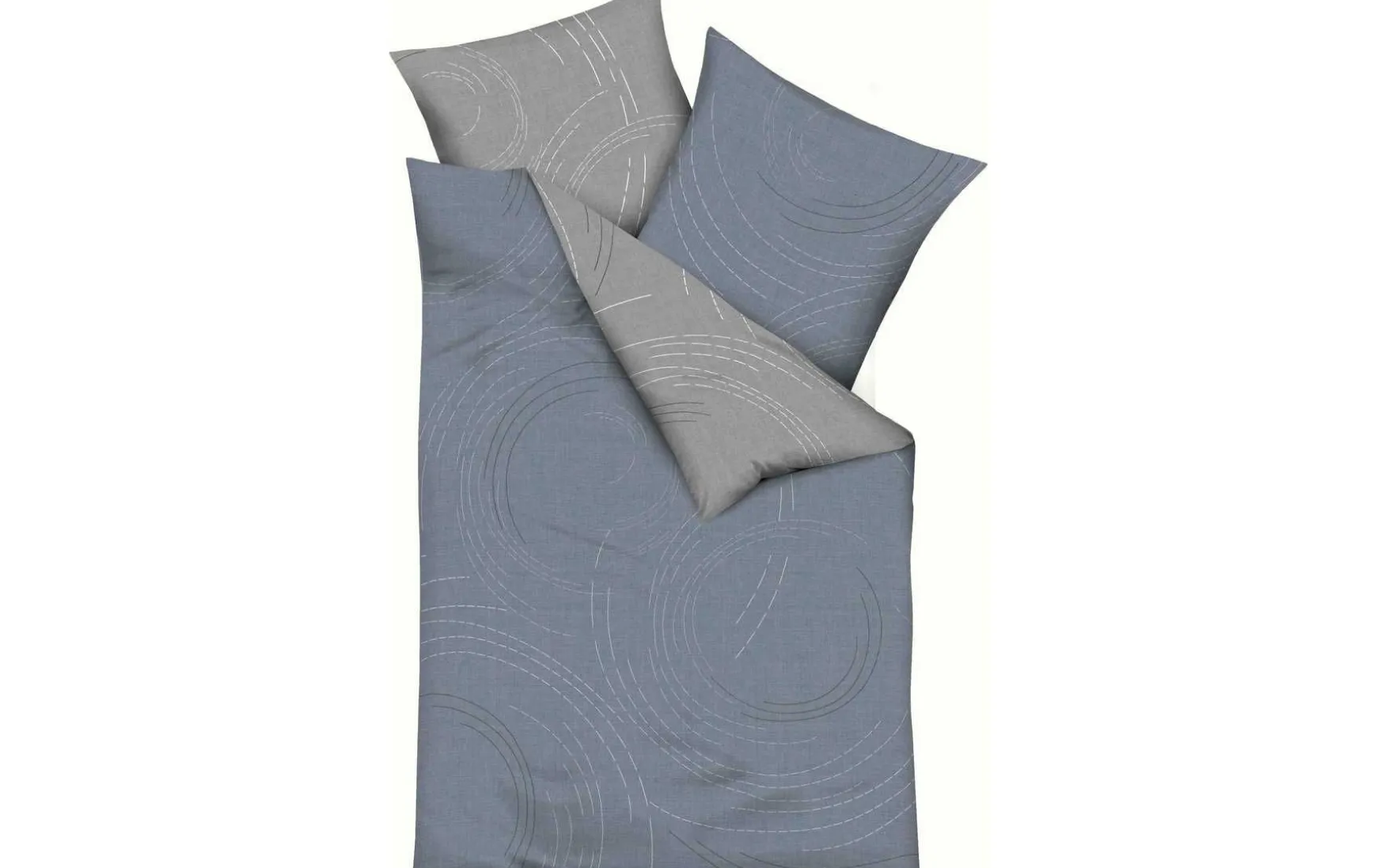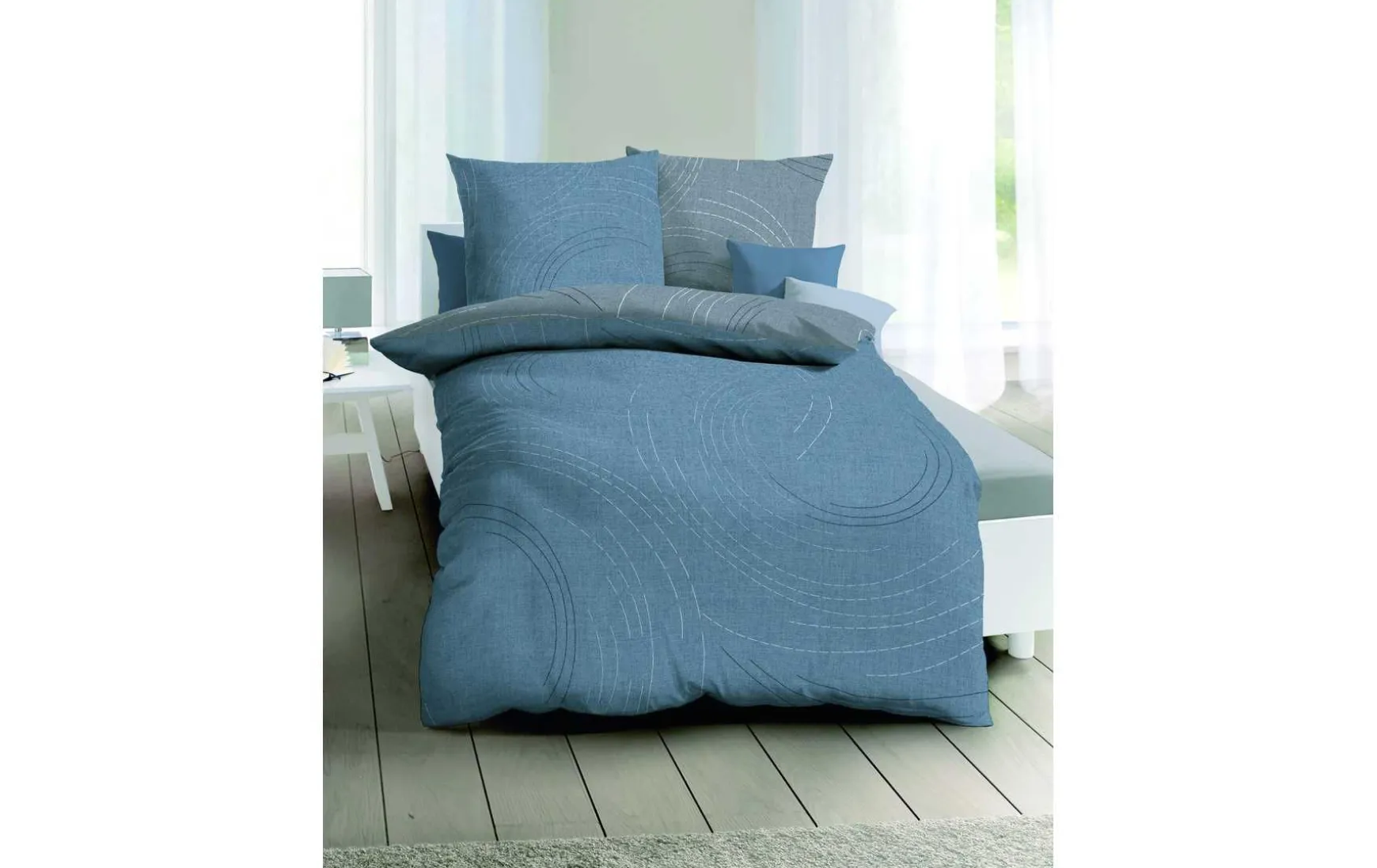 Die kreisförmigen Elemente auf der weichen Bettwäsche bestehen aus einzelnen Strichen und wirken unaufdringlich dekorativ.