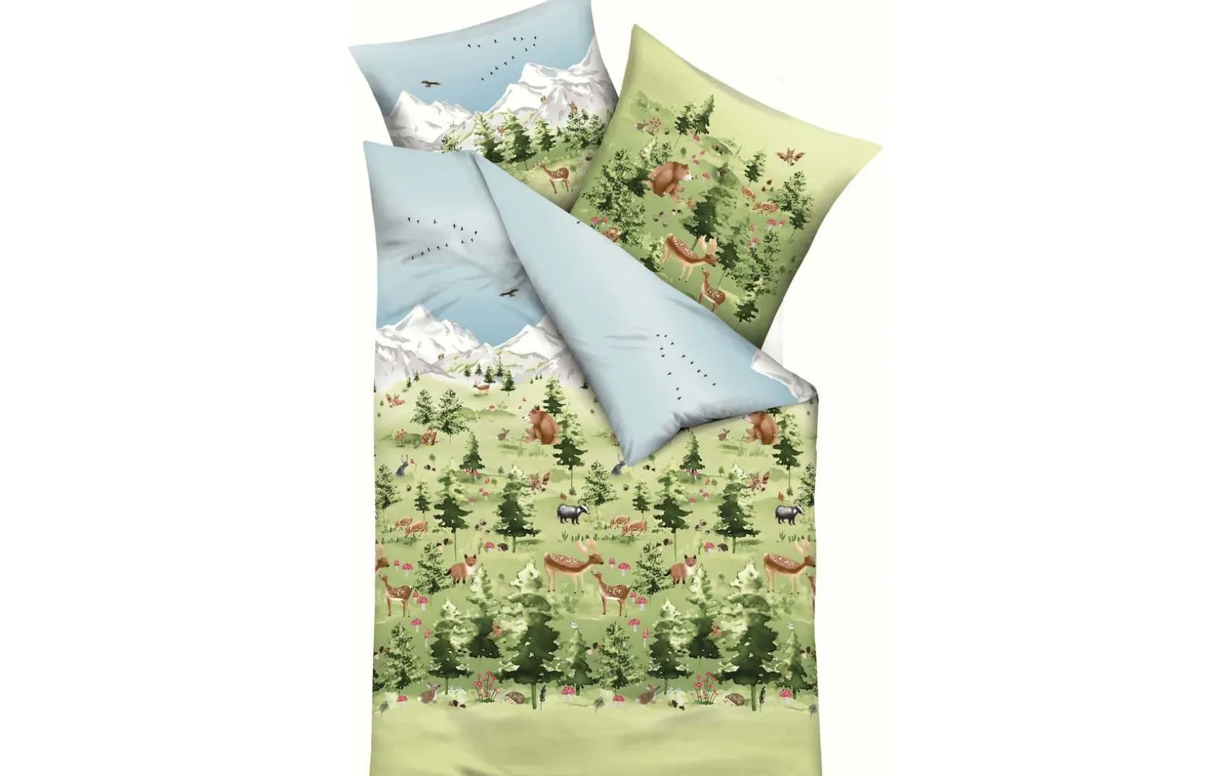 Auf der liebevoll gestalteten Bettwäsche lassen sich die unterschiedlichsten Waldtiere entdecken.