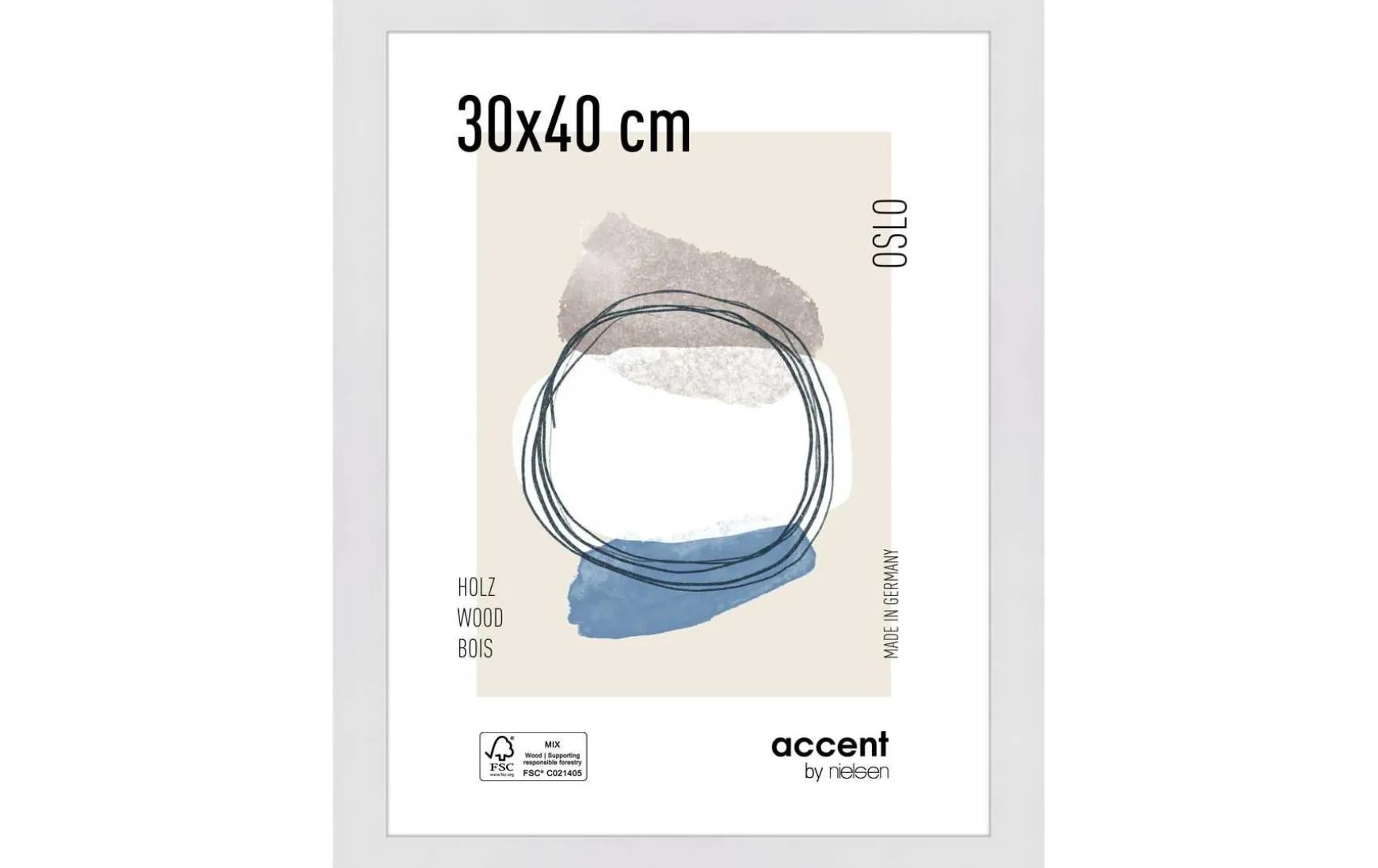 Der moderne Rahmen mit einem breiten MDF Profil von 28 mm wird in Deutschland hergestellt und ist FSC-zertifiziert.