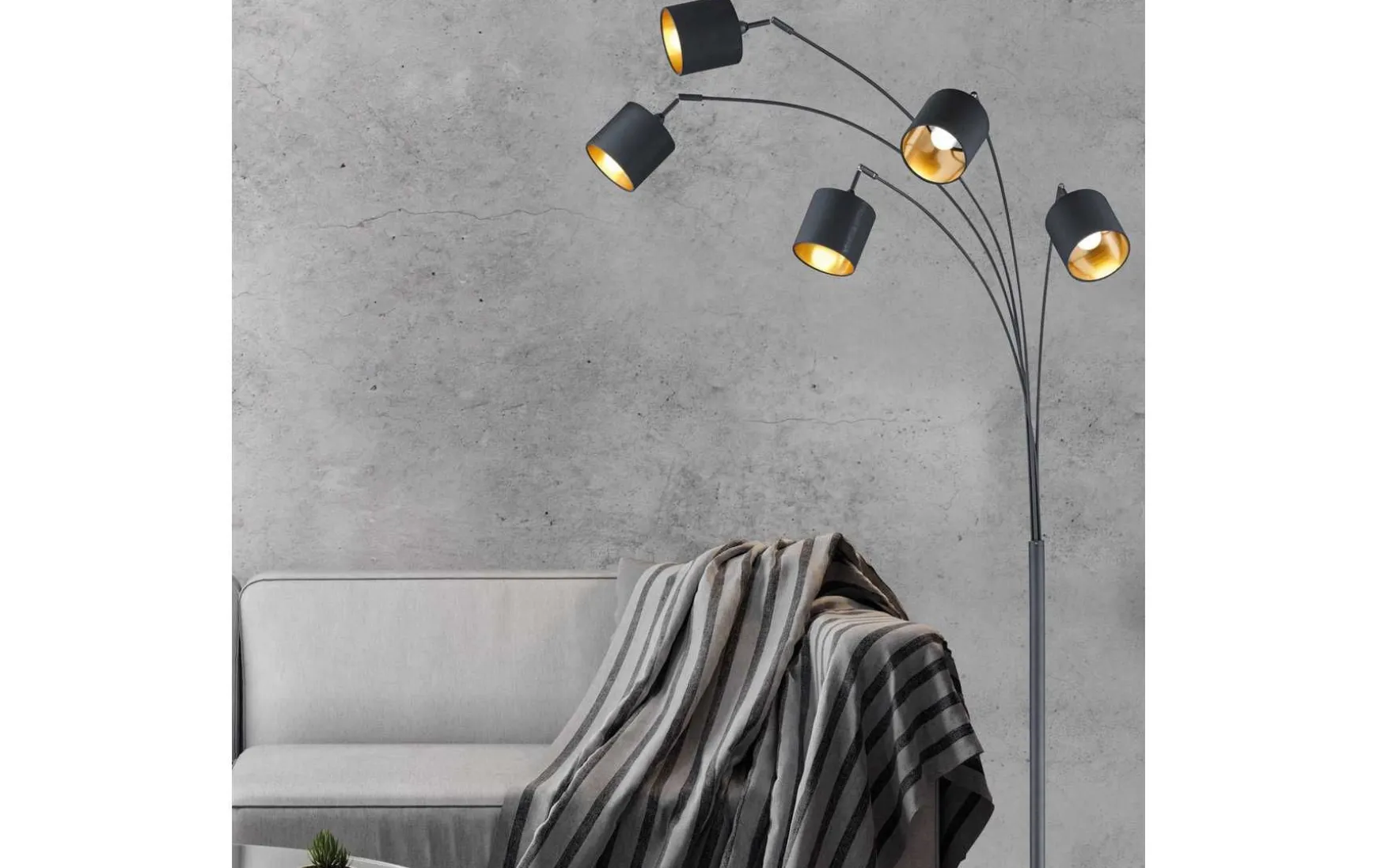 Diese Bogenlampe setzt stilvolle Highlights in deinem Zuhause! Ihr minimalistisches, mattschwarzes Design fügt sich perfekt in Möbel im Loft-Style ein und harmoniert zugleich wunderbar mit jeder anderen Inneneinrichtung. Die 5-flutige Bogenleuchte ist schwenkbar, ca. 200 x 30 cm groß und lässt sich individuell an deine Bedürfnisse anpassen. Tauche dein Wohnzimmer in angenehmes Licht und schaffe so eine heimelige Atmosphäre. Die Bogenleuchte begeistert nicht nur durch ihr zeitgemäßes Design, sondern auch durch ihre vielseitige Funktionalität. Sie ist ideal, um gezieltes Licht über Esstischen, Leseecken oder Loungebereichen zu bieten. Die Bogenform ermöglicht es, das Licht genau dorthin zu lenken, wo du es brauchst. Mit einer Fassung für E14 Leuchtmittel und einer Gesamtleistung von 28 W bietet diese Stehleuchte ausreichend Helligkeit, um deinen Raum in ein angenehmes Licht zu tauchen.
