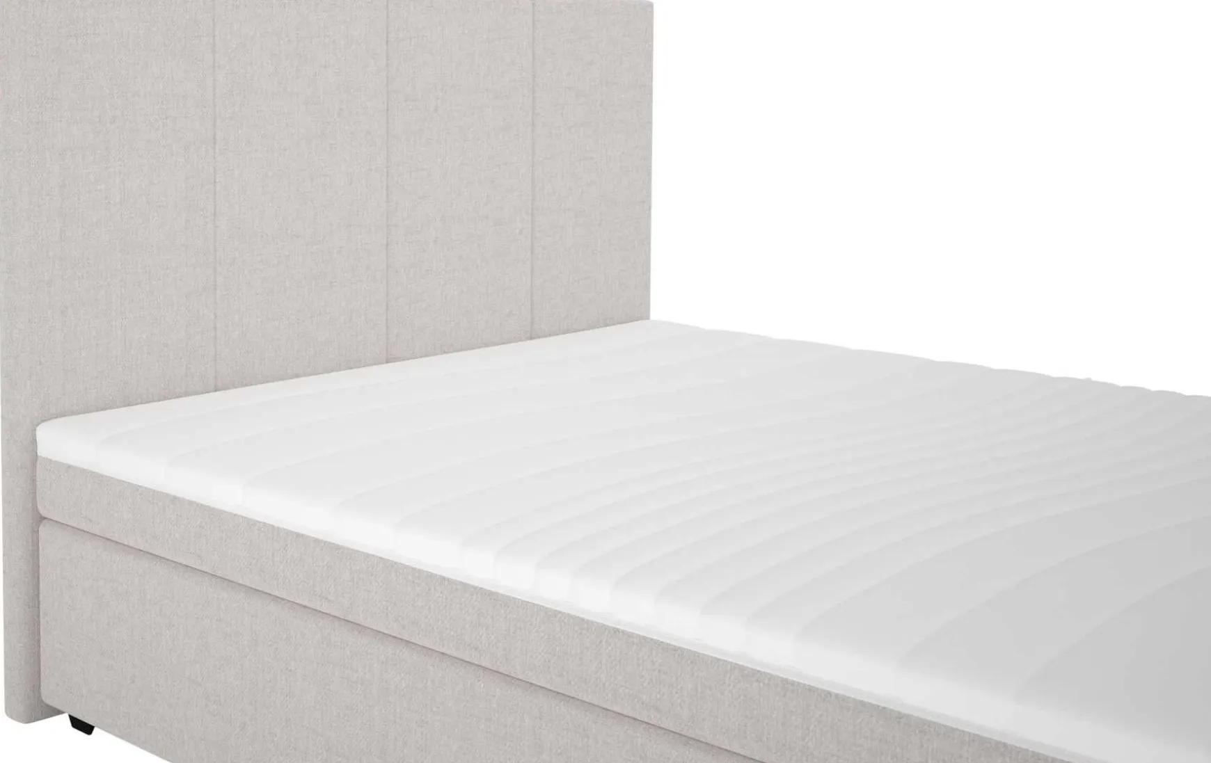 Die Box besteht aus robuster Spannplatte, gepolstert mit 1 cm PUR-Schaum, und bietet dank Bonellfederkern eine angenehme Unterfederung. Dazu gibt es eine lose Bonellkernmatratze mit 14 cm Kernhöhe und abnehmbarem Bezug – praktisch und pflegeleicht!
