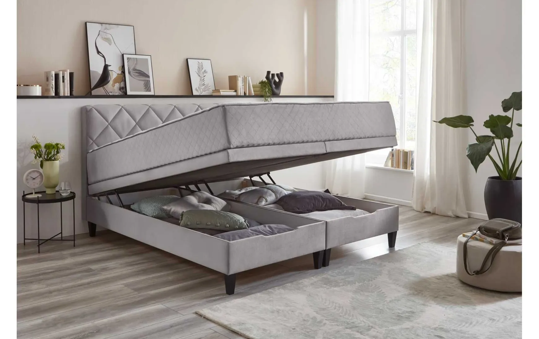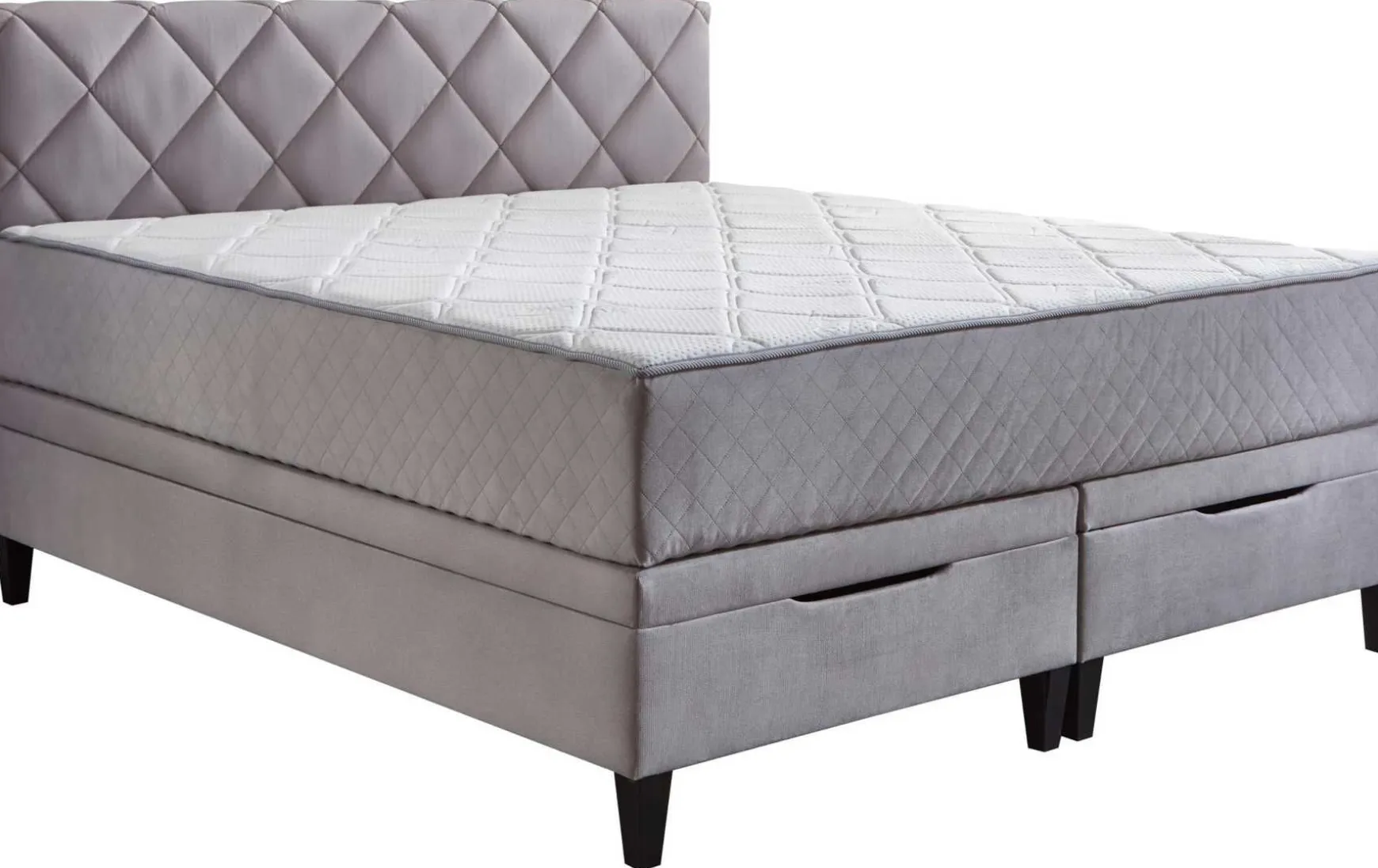 Dieses komfortable Boxbett verwandelt dein Schlafzimmer in eine echte Wohlfühloase und verbindet luxuriösen Schlafkomfort mit durchdachter Funktionalität. Mit einer großzügigen Liegefläche von 180 × 200 cm und einer komfortablen Liegehöhe von ca. 72 cm bietet es beste Voraussetzungen für erholsame Nächte. Der hochwertige, mehrschichtige Aufbau mit 7-Zonen-Taschenfederkernmatratze passt sich punktgenau an den Körper an und sorgt für optimale Druckentlastung. Dank der Wendefunktion mit zwei Härtegraden (H2/H3) lässt sich der Liegekomfort individuell anpassen. Die beidseitige Komfortschaumpolsterung unterstützt ein ausgeglichenes Schlafgefühl und erhöht die Langlebigkeit. Besonders praktisch sind die zwei integrierten Bettkästen mit Gasdruckfedern, die sich leicht öffnen lassen und mit rund 500 Litern Stauraum reichlich Platz für Bettwäsche oder saisonale Textilien bieten. Das weich gepolsterte Kopfteil mit eleganter Steppung rundet das Design stilvoll ab und lädt zum entspannten Anlehnen ein. Ein Boxbett, das Komfort, Stauraum und ein starkes Preis-Leistungs-Verhältnis perfekt vereint.