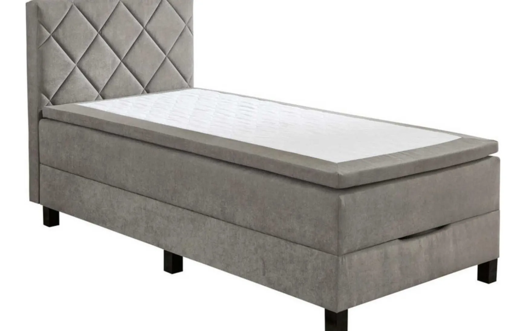 Mit einem silbergrauem Stoffbezug und einer optisch ansprechenden Rautensteppung am Kopfteil fügt sich das Boxbett klassisch und doch modern in Ihr Schlafzimmer ein und verspricht komfortablen Liegekomfort. Das Basisgestell ist mit einem Bonell Federkern ausgestattet und punktet mit dem praktischen Bettkasten, der durch Gasdruckfedern leicht zu öffnen ist. Der integrierte Topper ist aus 5cm Komfortschaum in Optik eines separaten Toppers, ohne dass dieser verrutschen kann (fest vernäht gegen Verrutschen) Durch eine Vertiefung/Überlappung besteht die Möglichkeit ein Spannbettlaken zu fixieren, ohne dass die Seiten der Matratze überdeckt werden.