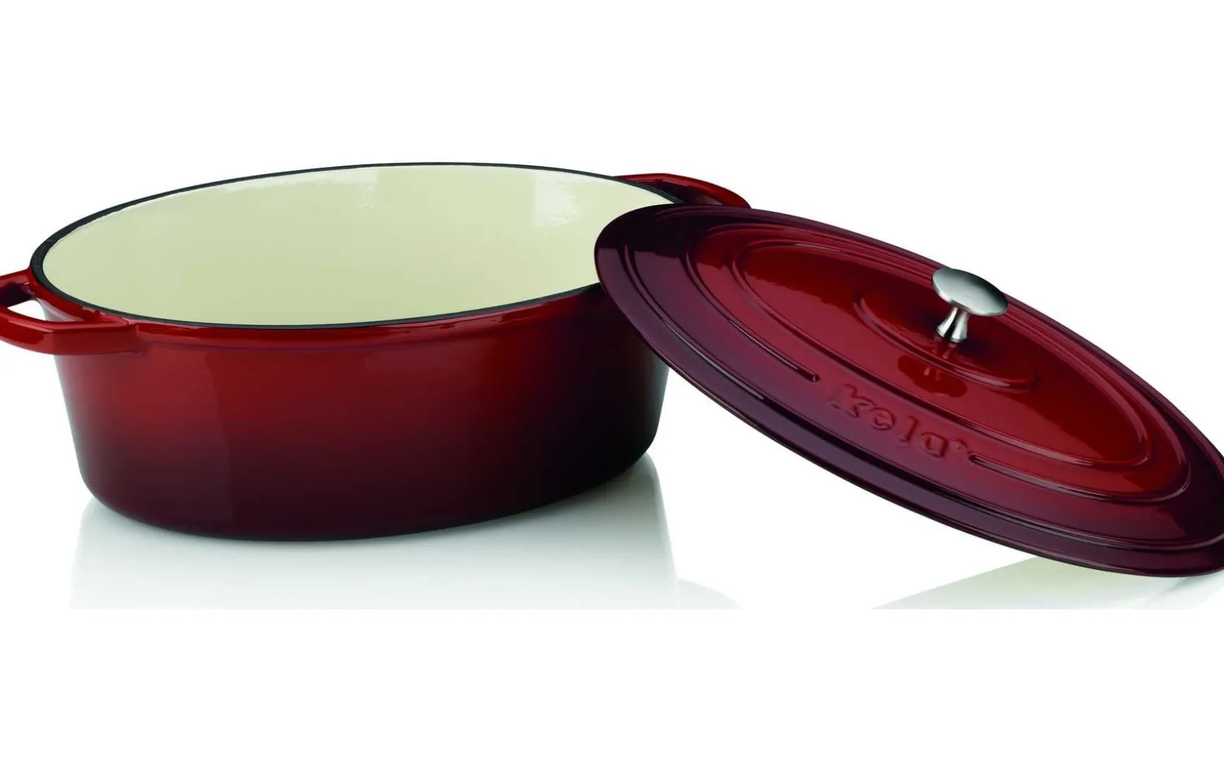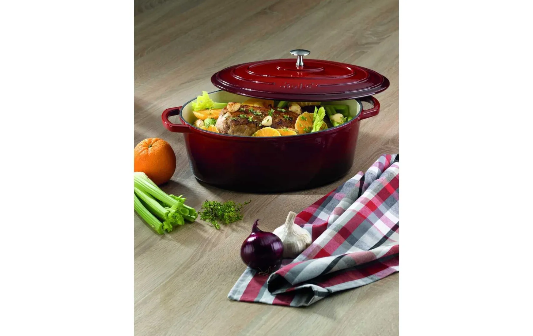 Bräter, Gusseisen emailliert, rund, backofenfest bis 300 C, Spülmaschinengeeignet, Für alle Herdarten geeignet, inkl. Induktion, 33,0×26,0x12,0cm 6,5l