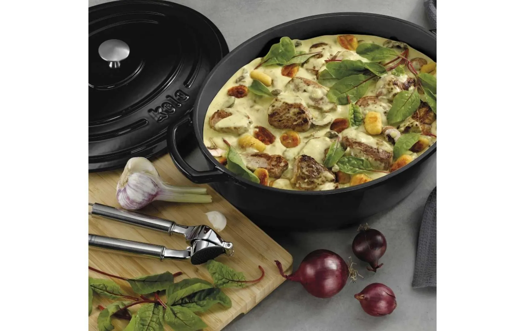 Besonderes Design und besondere Eigenschaften – mit diesem Kochgeschirr wird nicht nur nur die Küchenausstattung zum Hingucker sondern auch die Koch- und Bratergebnisse. Der ovale Bräter: Er zeichnet sich aus, durch eine Emaille-Beschichtung sowohl innen als auch außen.