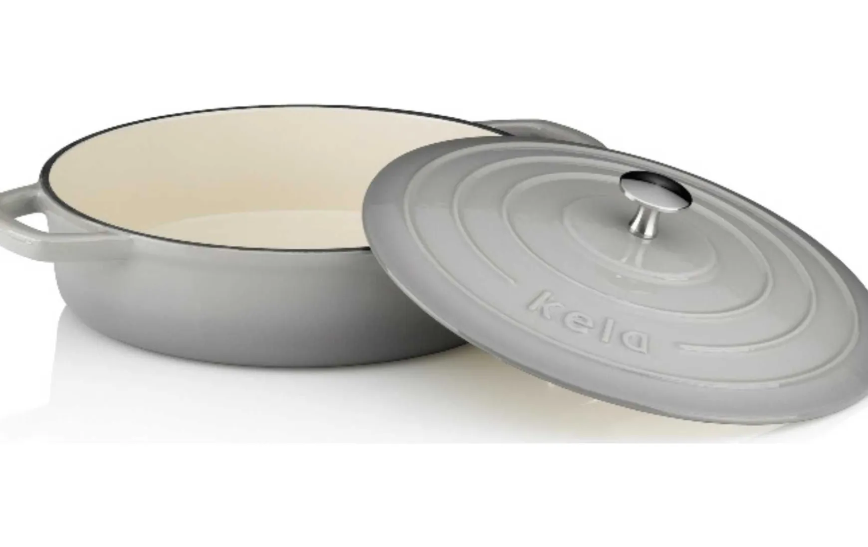 Dieser flache Bräter hat eine glänzende Optik in hellgrau. Er zeichnet sich aus durch eine Emaille-Beschichtung (innen beige glänzend) sowohl innen als auch außen. Der Bräter besitzt eine sehr gute Wärmespeicherung, wird im Innenraum gleichmäßig erhitzt und hat eine ange Lebensdauer. Der Bräter (emailliert) eignet sich für alle Herdarten (auch für Induktion!), zum Beispiel für länger dauernde Schmorgerichte. Durch das leichtere Gewicht (ca. 5,4 kg) als bei größeren Brätern ist ein einfacheres Handling möglich. Damit ist dies der perfekte „Gusseisen-Einstiegsartikel“. Bis 300° C erwendbar. Die Bodenstärke beträgt 4 – 4,5 mm. Für alle Herdarten geeignet.