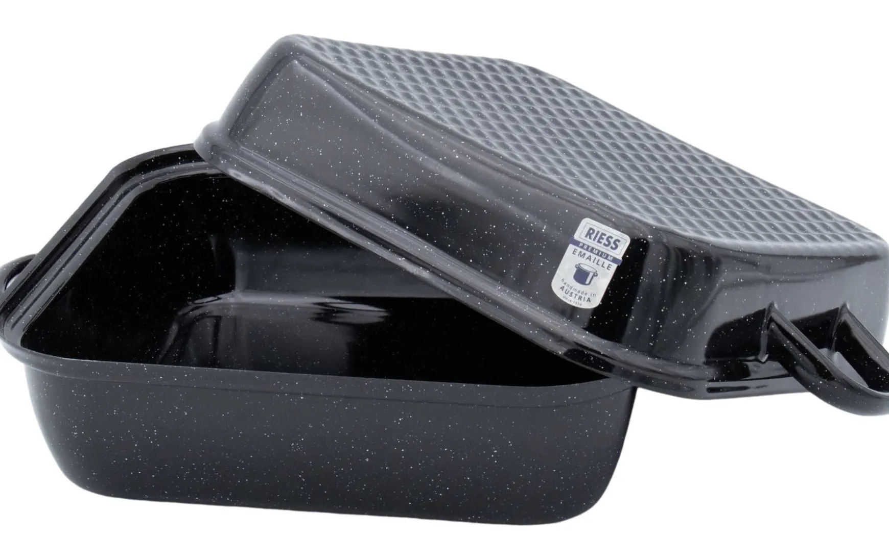 Unsere traditionelle Emaille Bratform mit ihren typischen zwei Tragegriffen und Deckel weckt bei Vielen die Erinnerung an Omas sonntäglichen Schweinsbraten aus dem „Bratenreindl“ (österreichischer Begriff für Kochgeschirr). Mit dieser Bratform mit Deckel haben sie einen ideale Bräter mit dem man Fleisch stundenlang schmoren kann. Der Deckel schließt perfekt dank des Falzes im unteren Bräterteil und ist ebenso mit zwei Griffen ausgestattet. Es wird wärmstens empfohlen beim Abnehmen einen Topflappen zu verwenden. In der Form kann der Braten dann gleich problemlos geschnitten werden. Nach dem Mahl ist der Bräter aus Emaille einfach zu reinigen. Die Emaille bewahrt die Aromen und der Deckel lässt die Flüssigkeit nicht entweichen. Und das Beste – man hat mit diesem Stück mit einem Schlag auch zwei Backforme: Benötigt man den Deckel einmal nicht, kommt der Bräterdeckel selbst als zusätzliche Back-und Bratform zum Einsatz.