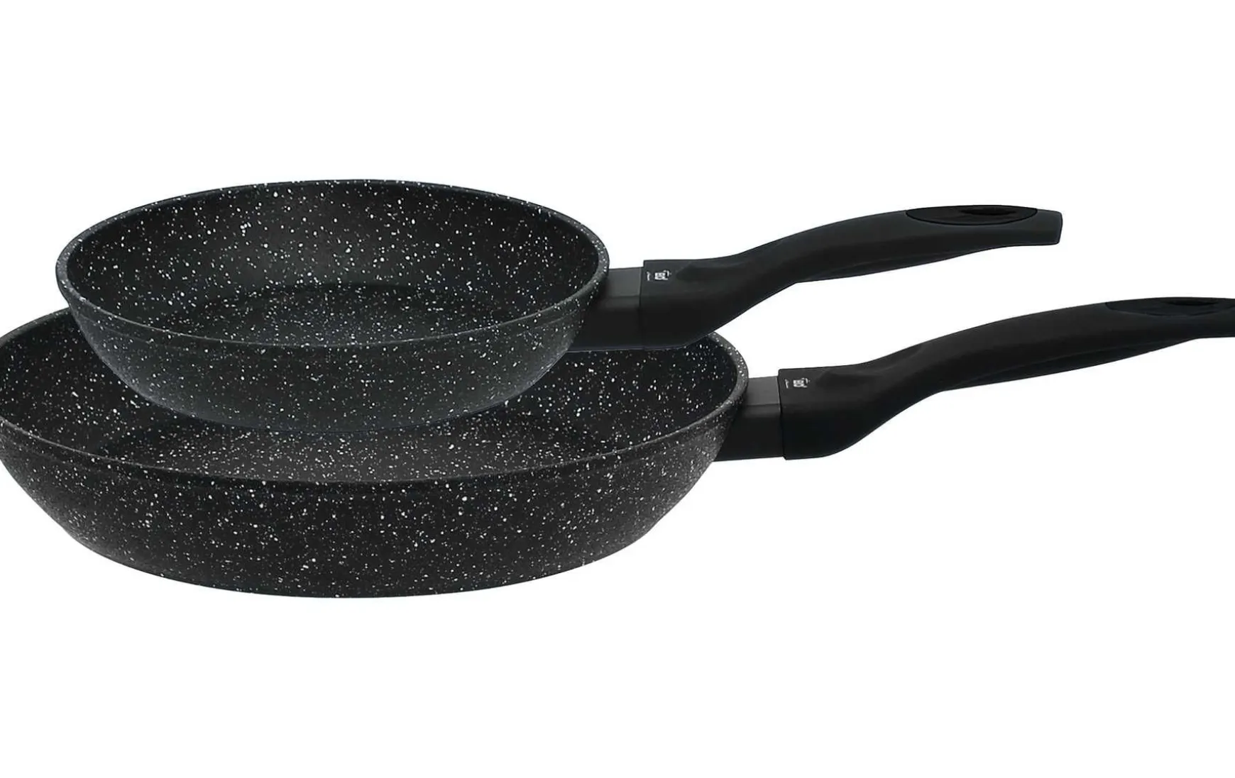 Dieses Bratpfannen-Set besteht aus einer Pfanne mit Durchmesser 28 cm und einer Pfanne mit Durchmesser 20 cm.