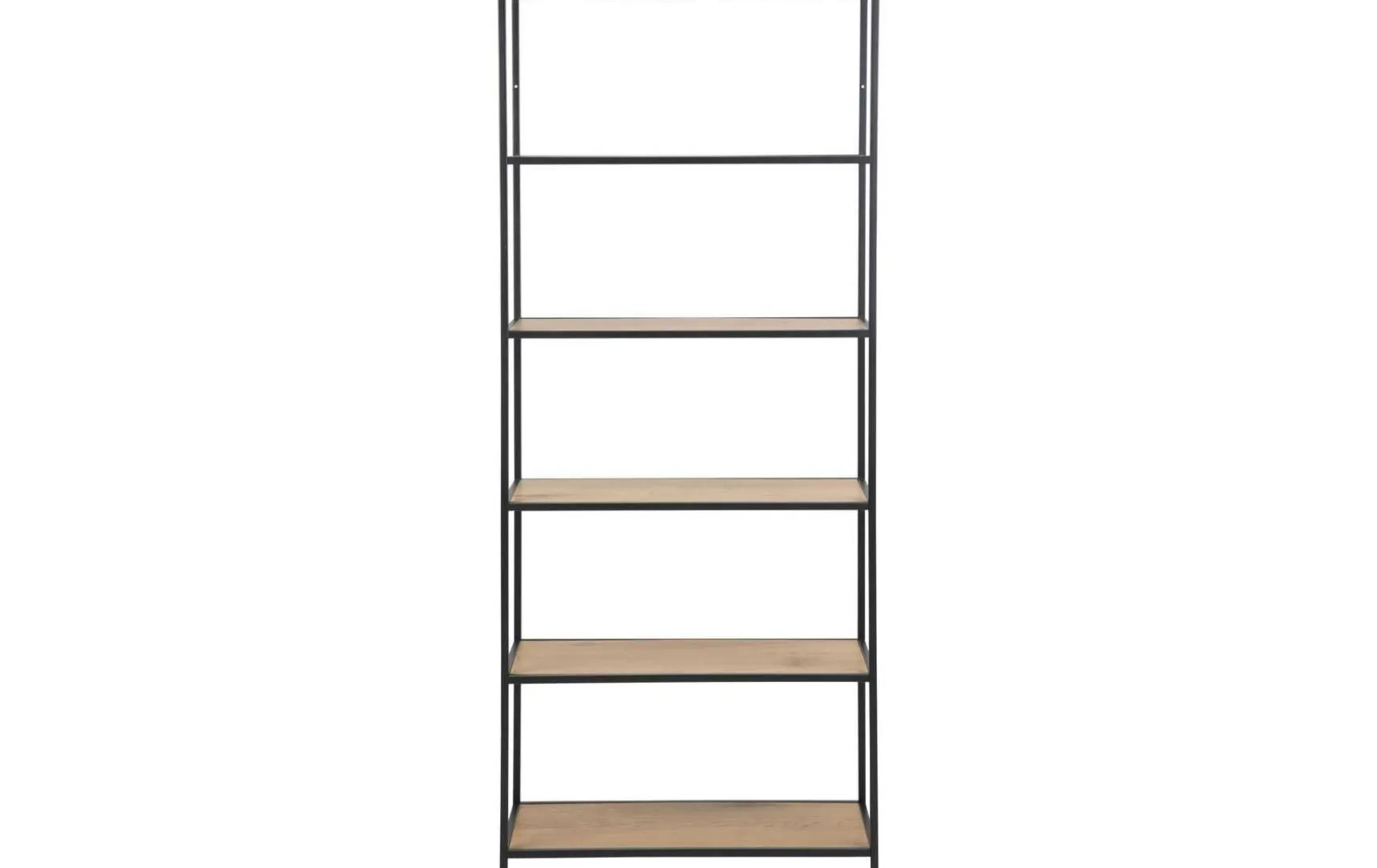 Das Bücherregal aus MDF und Metall überzeugt durch sein modernes, industrielles Design und bietet eine stilvolle Aufbewahrung für Bücher oder Dekoration. Die fünf offenen Ablageflächen aus Holz in Wildeiche Nachbildung sind symmetrisch angeordnet und verleihen dem Regal eine besondere, moderne Optik. Das stabile Metallgestell sorgt für sicheren Stand und setzt gleichzeitig einen dekorativen Kontrast zu den Holzflächen.