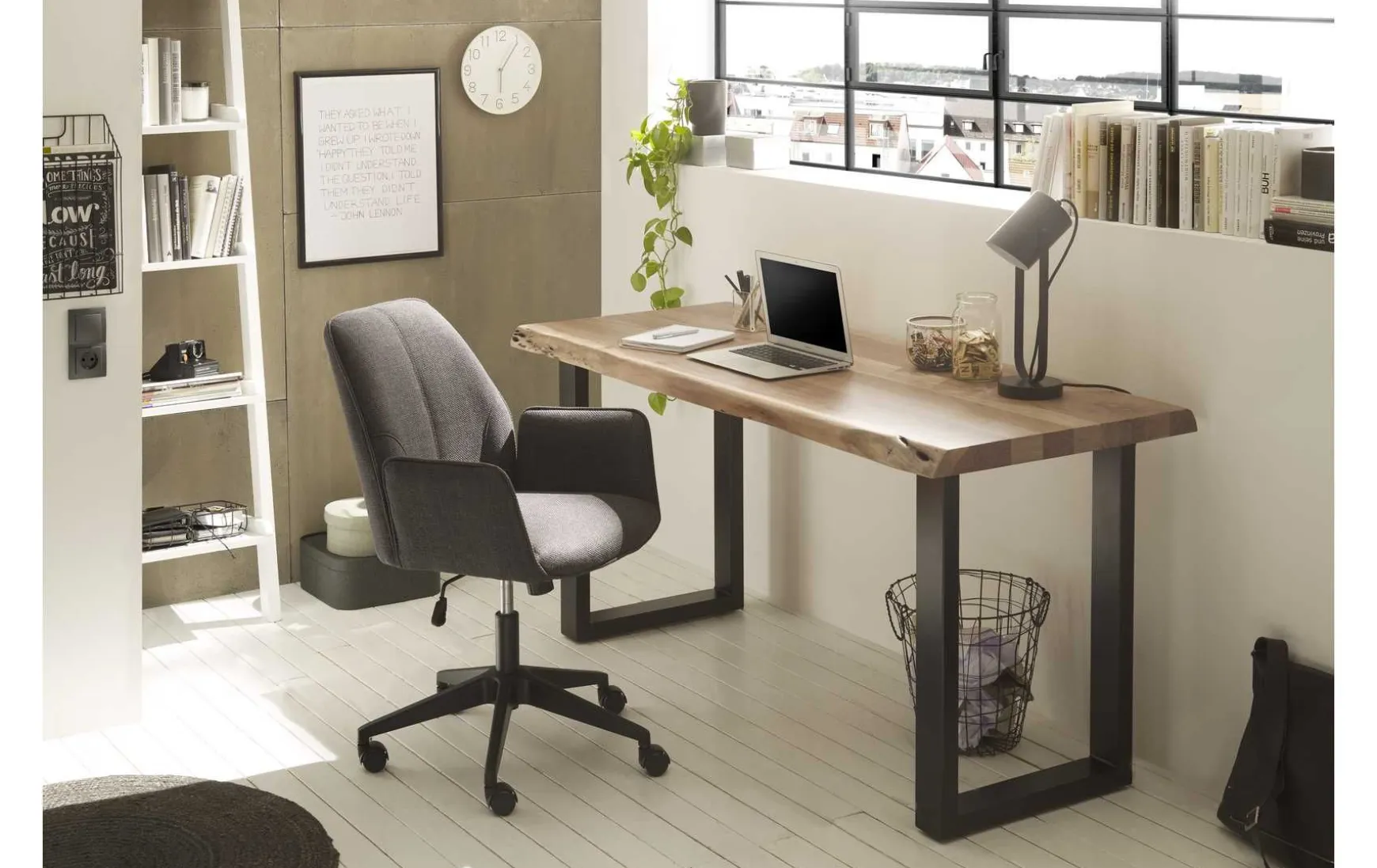 Dieser Bürodrehstuhl verbindet ergonomischen Sitzkomfort mit funktionalem Design. Der Stoffbezug in Anthrazit ist angenehm im Alltag und pflegeleicht, die Armlehnen entlasten Schultern und Arme bei längerem Sitzen. Dank des stabilen PU-Gestells in Schwarz mit 5 Rollen bleibt der Stuhl stets flexibel und leicht beweglich. Die Sitzhöhe ist von ca. 49 bis 59 cm verstellbar, sodass er individuell angepasst werden kann. Zusätzlich sorgt der Butterfly-Mechanismus für Beweglichkeit und unterstützt dynamisches Sitzen. Mit einer Belastbarkeit bis 120 kg bietet er Stabilität für den täglichen Einsatz im Homeoffice oder Büro. Ein Stuhl, der Komfort, Funktion und modernes Design vereint – zu einem Preis, der angenehm überrascht.