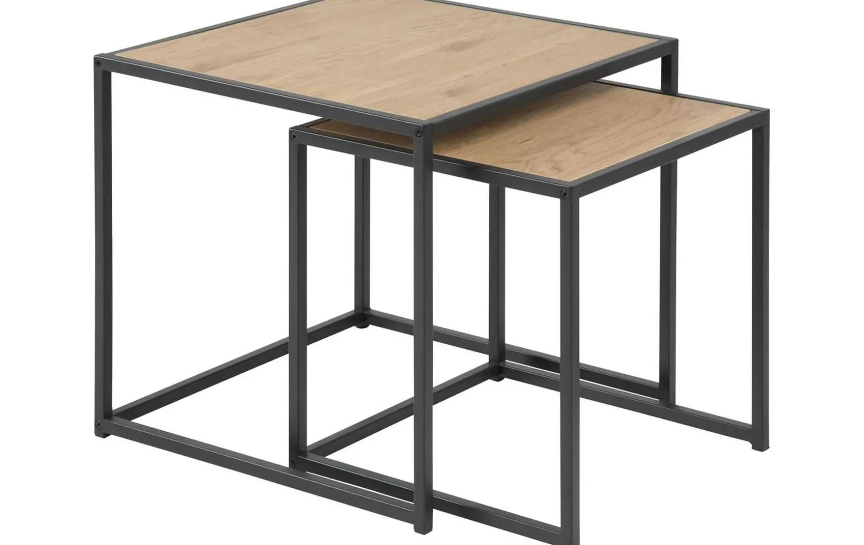 Dieses moderne Couchtisch-Set überzeugt durch sein zeitloses Design und praktische Vielseitigkeit. Die Deckplatten in Wildeiche-Nachbildung setzen einen warmen, natürlichen Akzent, während das schwarze Metallgestell für einen modernen Kontrast sorgt. Dank der zwei unterschiedlich großen Tische lässt sich das Set flexibel arrangieren und bei Bedarf platzsparend zusammenschieben – ideal für moderne Wohnräume.