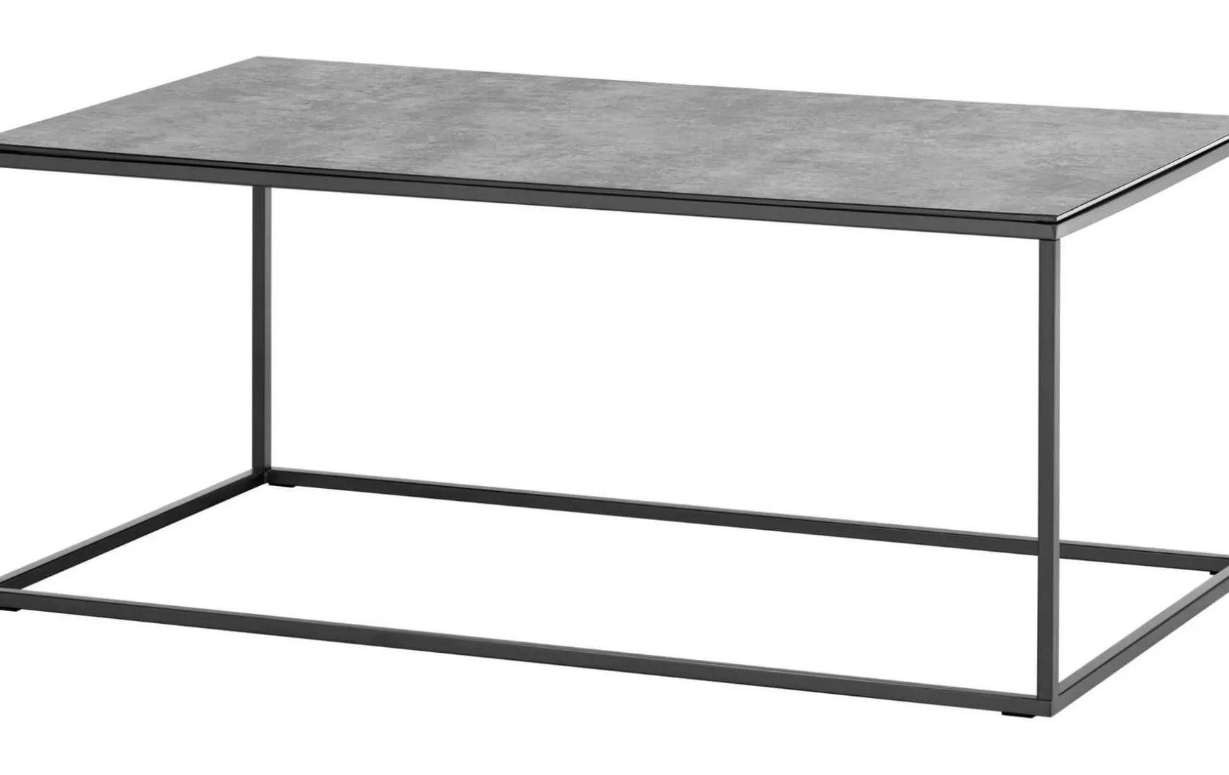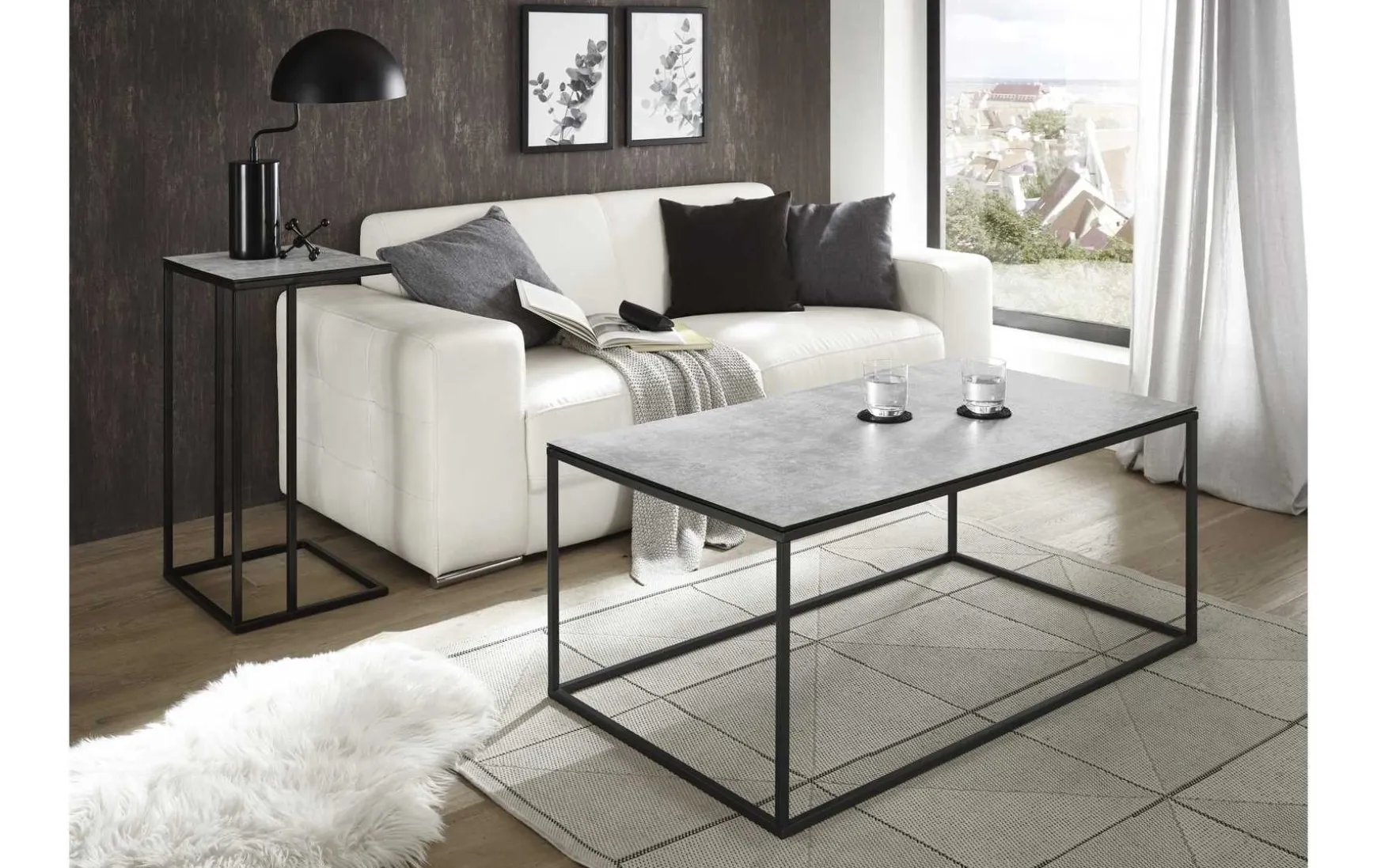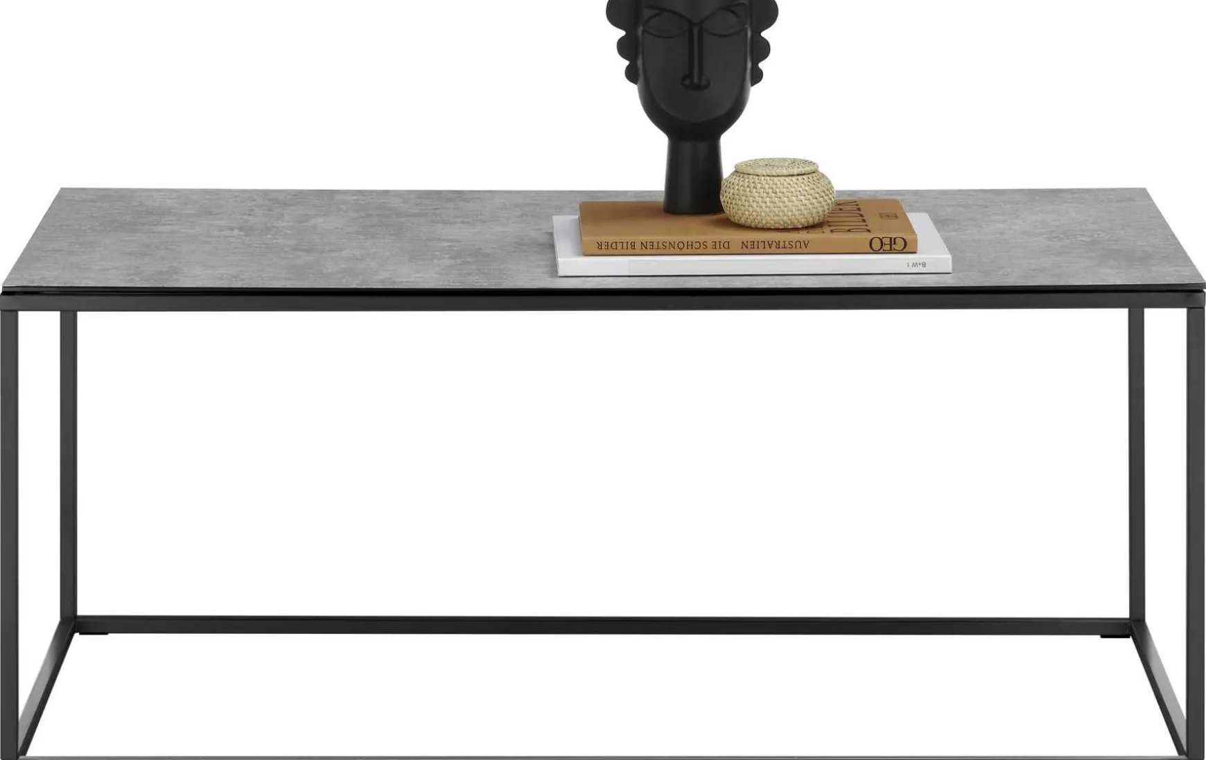Dieser moderne Couchtisch überzeugt durch seine elegante Tischplatte in grauer Keramikoptik aus Glas/Melamin und ein klares, zeitgemäßes Design. Das schwarz pulverbeschichtete Metallgestell sorgt für Stabilität und setzt einen stilvollen Kontrast zur edlen Oberfläche. Mit seinen großzügigen Maßen bietet der Tisch ausreichend Platz für Getränke, Snacks oder Dekoration und wird zum funktionalen Mittelpunkt Ihres Wohnbereichs.