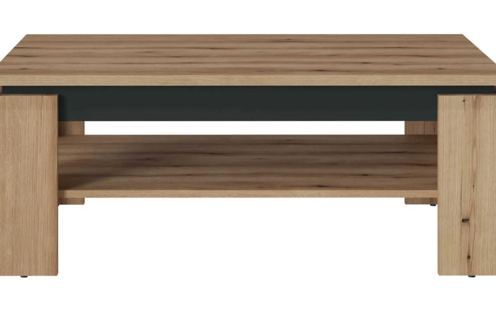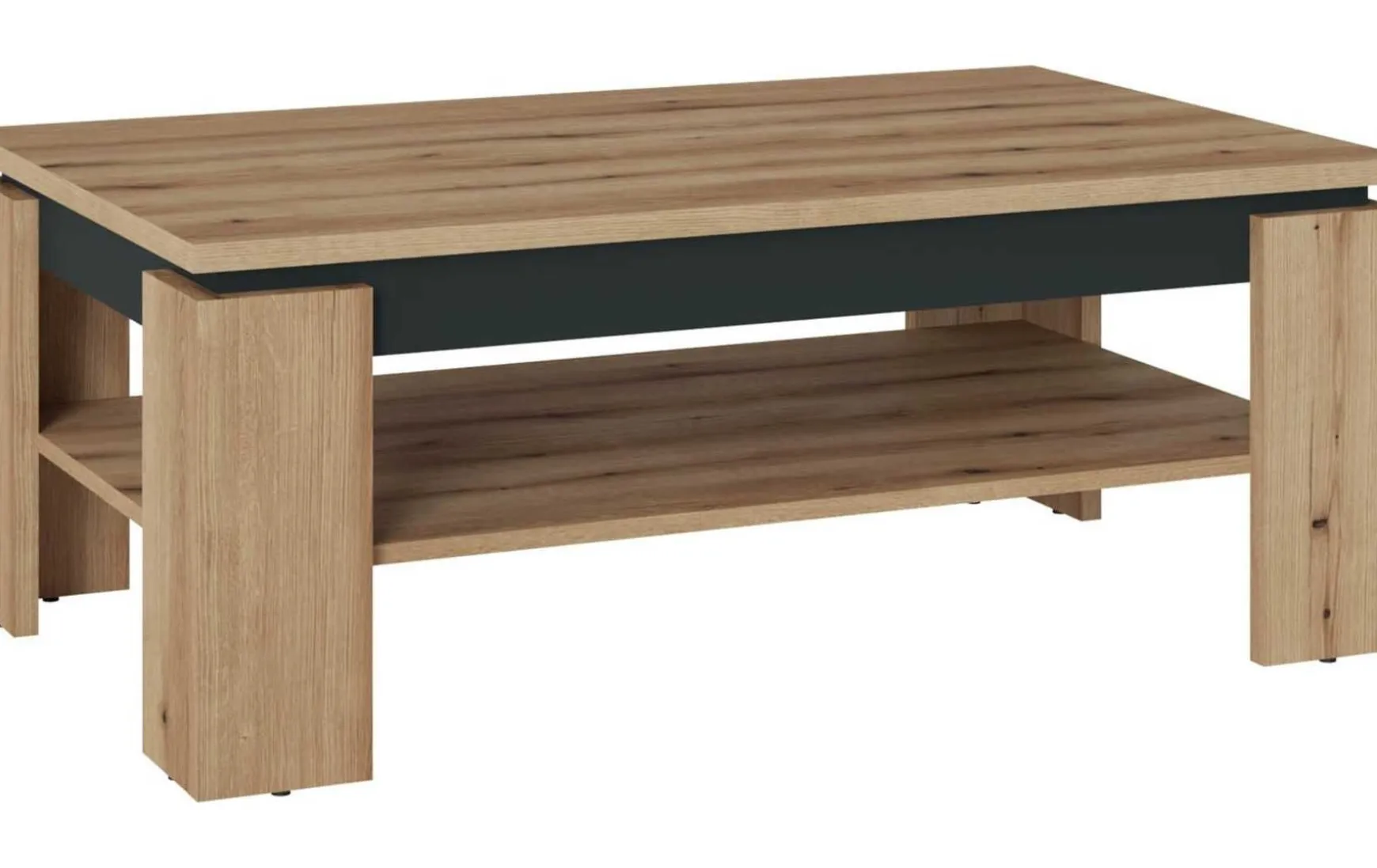 Dieser Couchtisch inkl. Schublade überzeugt durch sein modernes und funktionales Design. Mit einer großzügigen Stellfläche bietet er ausreichend Platz für Deko, Zeitschriften oder Getränke. Die Kombination aus braunen und grauen Tönen passt ideal zu unterschiedlichen Wohnstilen, während das melaminbeschichtete Material für eine pflegeleichte und langlebige Oberfläche sorgt. Perfekt für verschiedene Räume geeignet.
