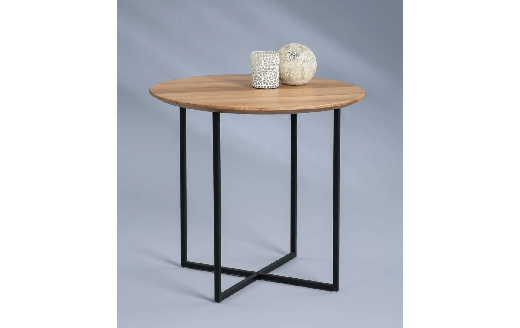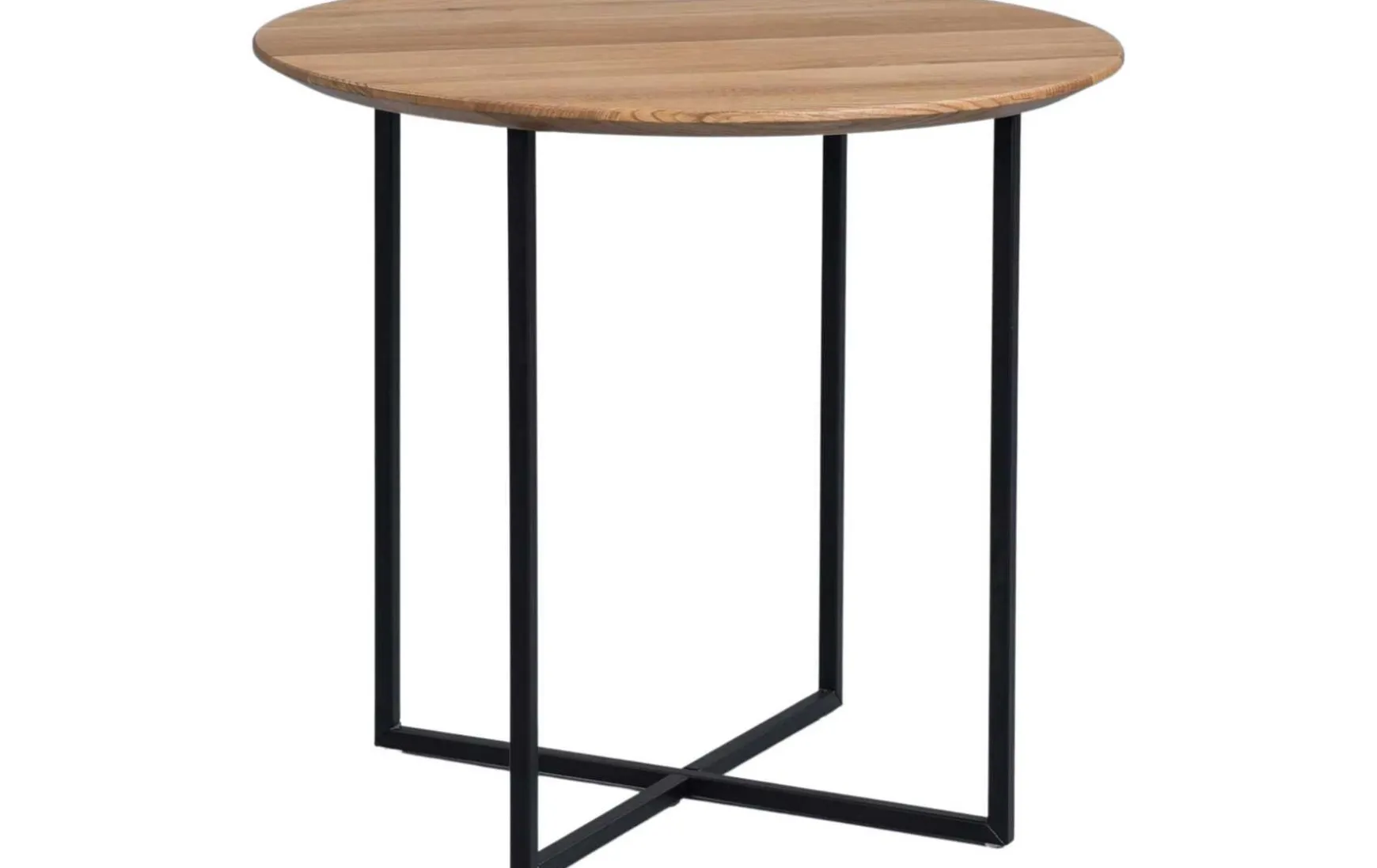 Dieser runde Couchtisch aus massiver Wildeiche überzeugt durch seine natürliche Ausstrahlung und ein modernes, zeitloses Design. Die geölte Massivholz-Tischplatte mit 20 mm Stärke bringt die charakteristische Maserung der Wildeiche besonders schön zur Geltung, während das schwarz matt lackierte Metallgestell für einen stilvollen Kontrast sorgt. Dank seiner kompakten Maße eignet sich der Tisch ideal als eleganter Mittelpunkt im Wohnbereich