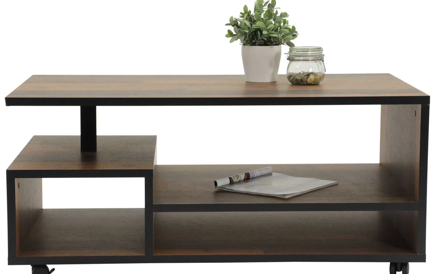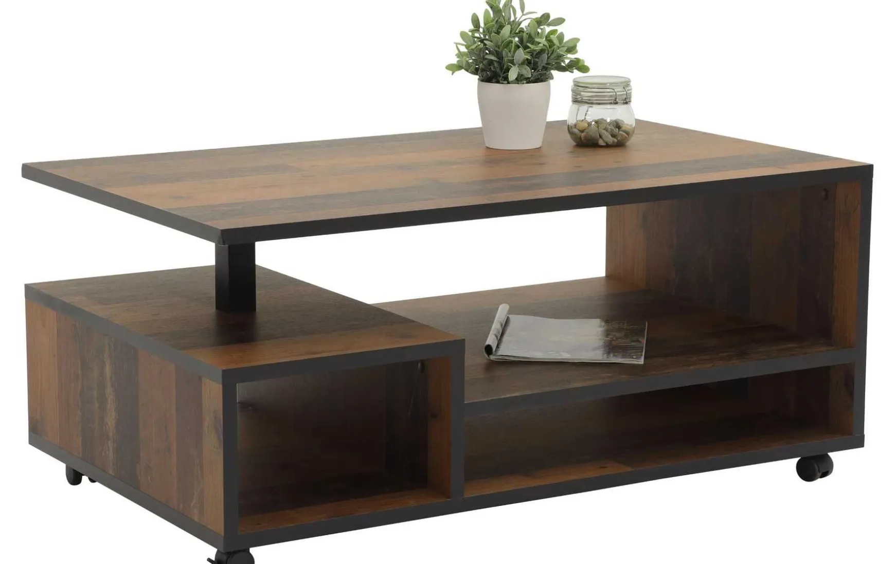 Der moderne Couchtisch überzeugt durch seine stabile Konstruktion und sein zeitgemäßes Design. Dank der integrierten Rollen lässt er sich flexibel im Raum bewegen und bietet zusätzlich eine praktische Ablagefläche. Die rechteckige Tischplatte in der Farbkombination Oldwood/Schwarz ist furniert und aus MDF hochglanzlackiert, wodurch sie besonders pflegeleicht ist. Mit seinen Maßen von ca. 110 × 68 × 50 cm eignet sich der Tisch ideal für moderne Wohnbereiche und wird bereits vormontiert geliefert.