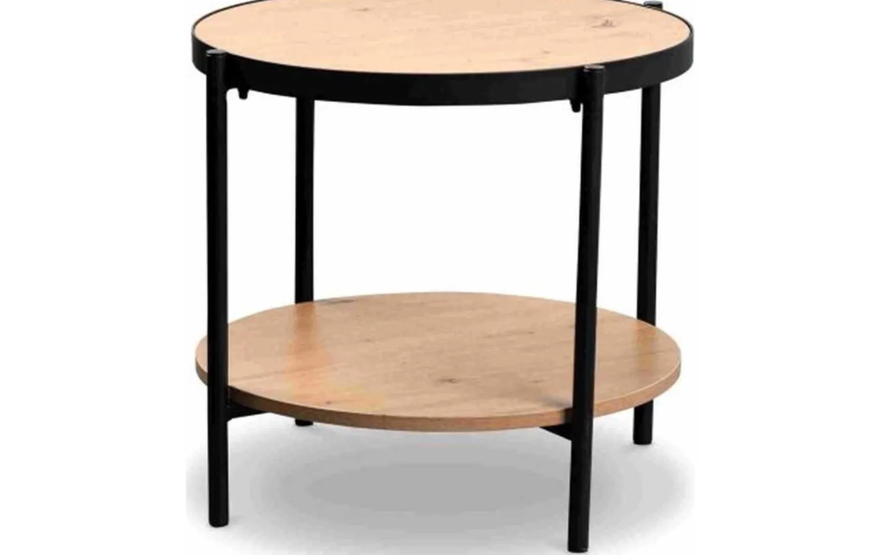 Moderner Beistelltisch mit MDF-Tischplatte im Artisaneiche-Dekor. Mit 52 cm Durchmesser und 45 cm Höhe fügt er sich stilvoll und funktional in jedes Wohnkonzept ein.