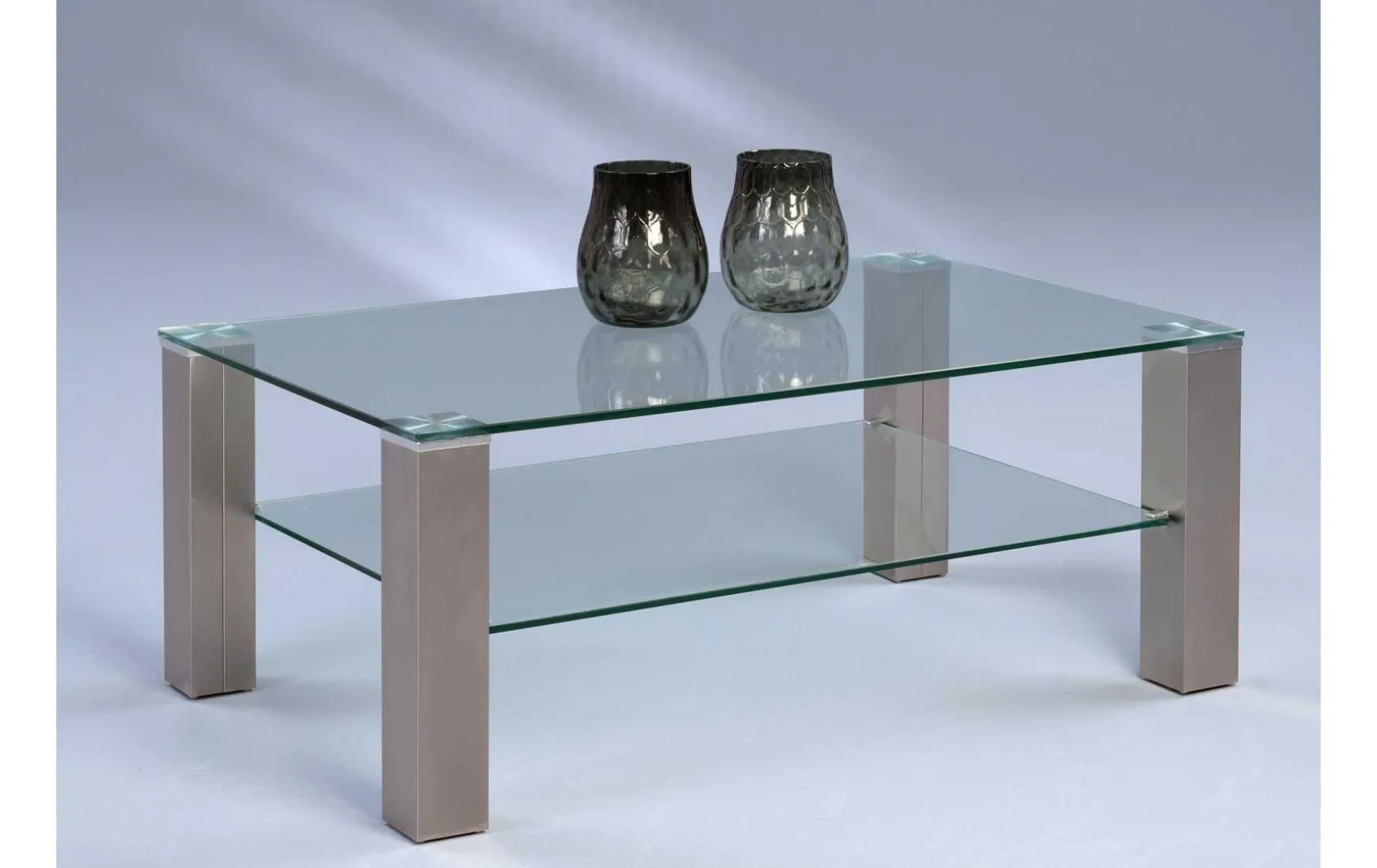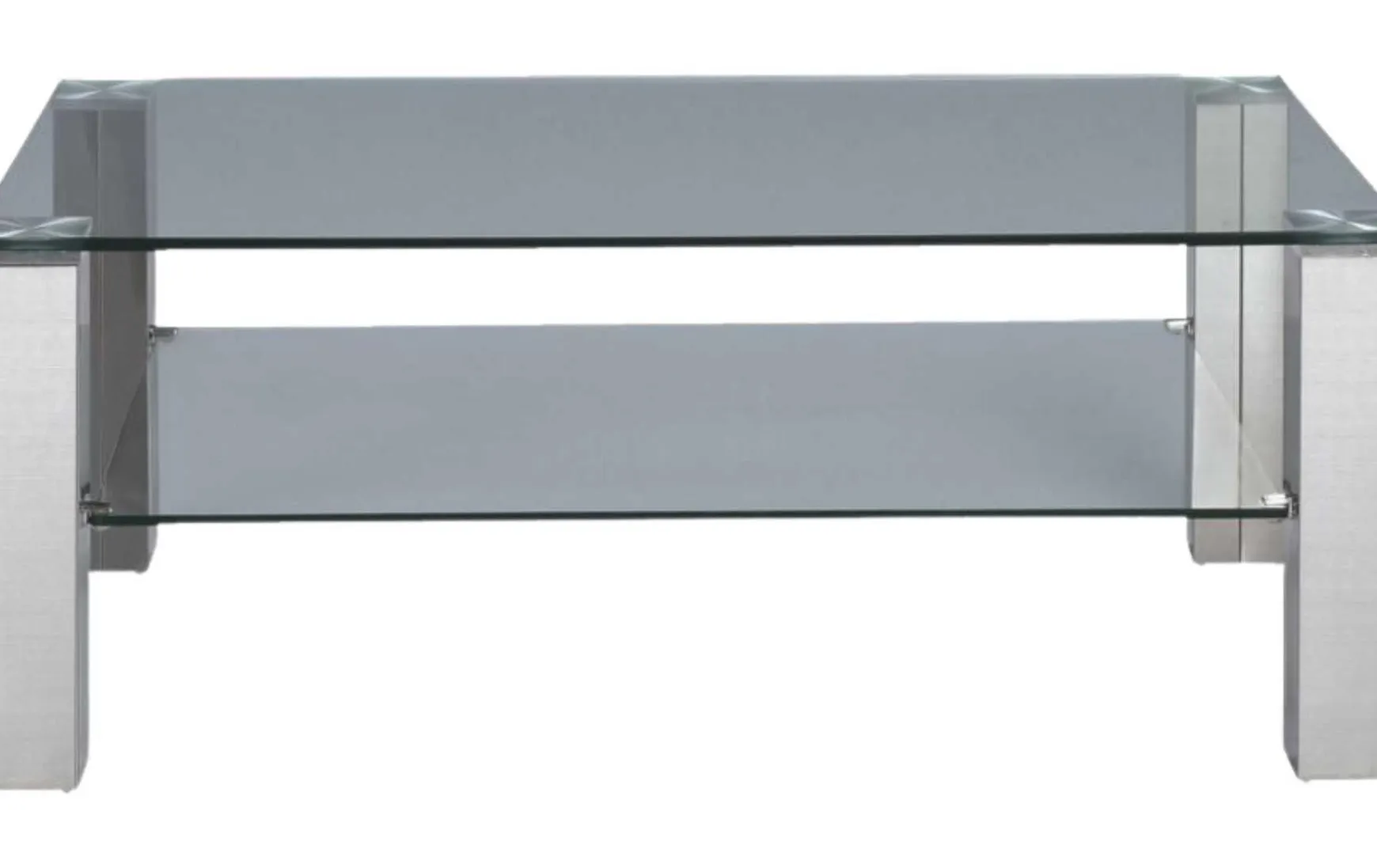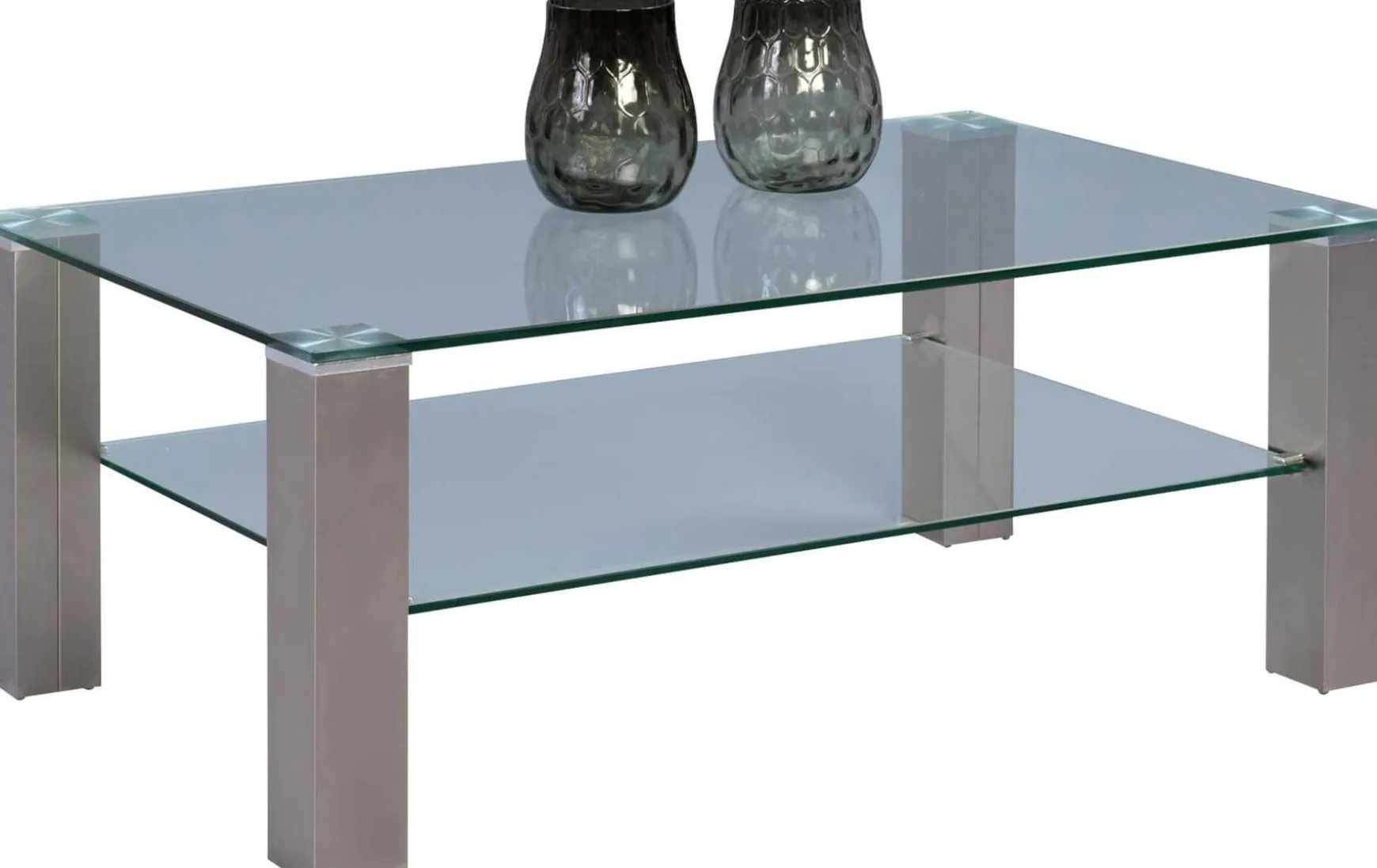 Dieser moderne Couchtisch überzeugt durch seine elegante Kombination aus klarem Sicherheitsglas und einem Gestell in gebürsteter Edelstahl-Optik. Die 12 mm starke Glasplatte sorgt für eine hochwertige, stabile Anmutung, während die praktische Ablagefläche zusätzlichen Stauraum für Zeitschriften oder Fernbedienungen bietet. Dank seines zeitlosen Designs fügt sich der Tisch harmonisch in moderne Wohnräume ein.