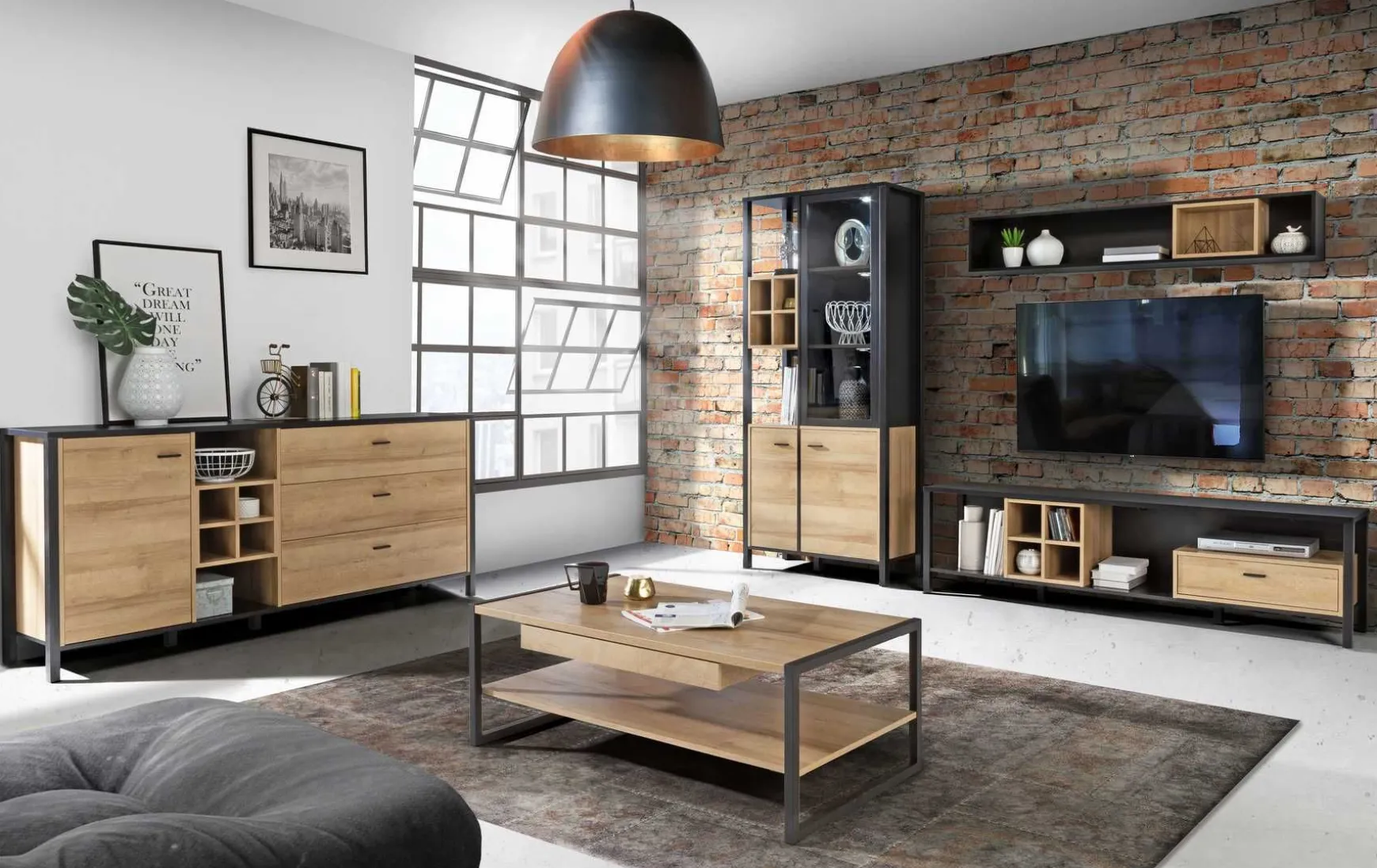 - Hauptfarbe: Braun (Riviera Eiche/Metall Schwarz)