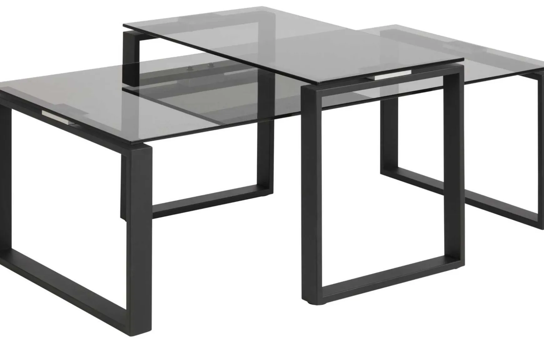 - Couchtisch im 2-Satz mit rauchfarbenen Glasplatten