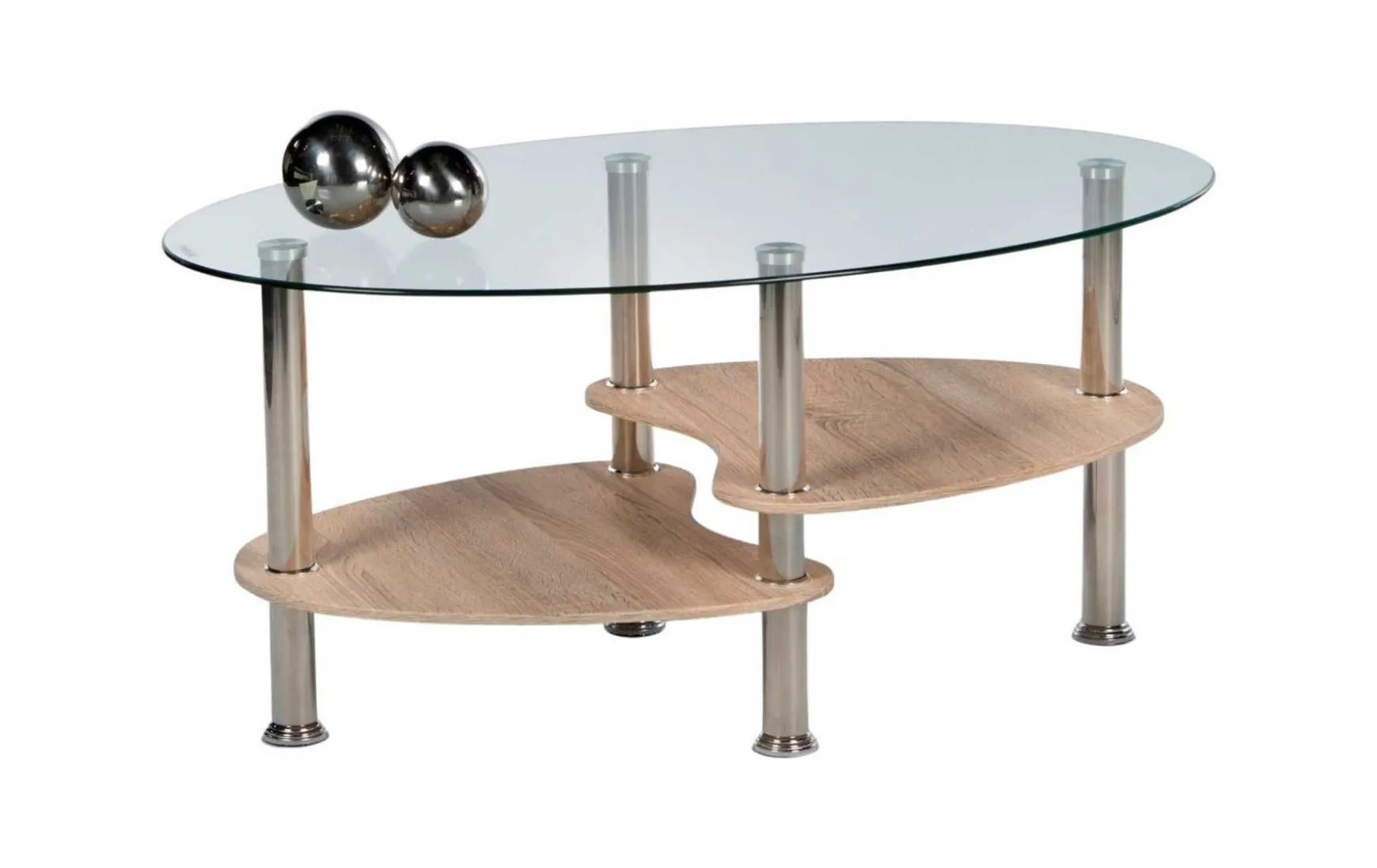 Dieser moderne Couchtisch in Artisan Eiche verbindet stilvolles Design mit praktischer Funktionalität und passt perfekt in zeitgemäße Wohnräume. Mit seinen Maßen von ca. 42 × 90 × 55 cm bietet er ausreichend Ablagefläche für Zeitschriften, Fernbedienungen oder Dekoration. Die elegante Tischplatte aus Sicherheitsglas verleiht dem Couchtisch eine leichte, moderne Optik und sorgt zugleich für Stabilität und Langlebigkeit. Besonders praktisch sind die zwei zusätzlichen Ablagen, die für Ordnung im Wohnzimmer sorgen. Dank der beidseitig nutzbaren Dekore lässt sich der Tisch flexibel ausrichten und individuell an den Raum anpassen. Die warme Holzoptik in Sonoma Eiche schafft eine gemütliche Atmosphäre und harmoniert mit vielen Einrichtungsstilen.
