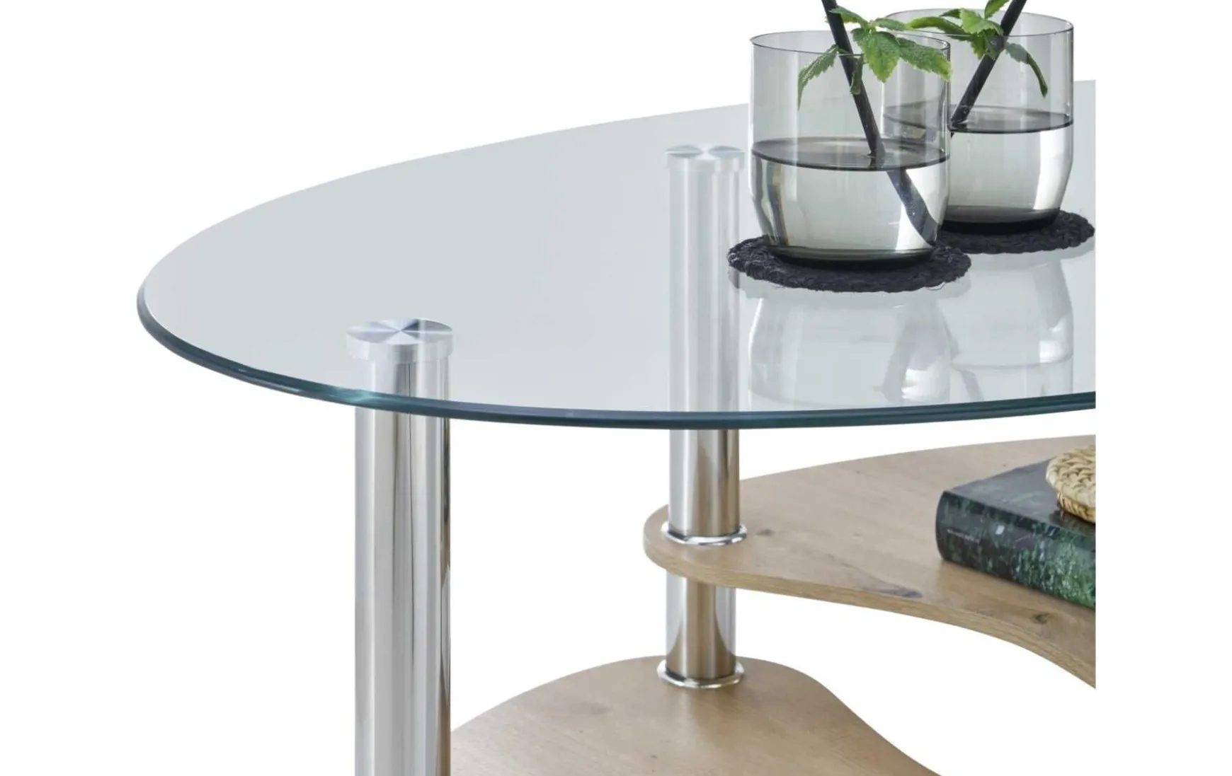 - Tischplatte: Klarglas