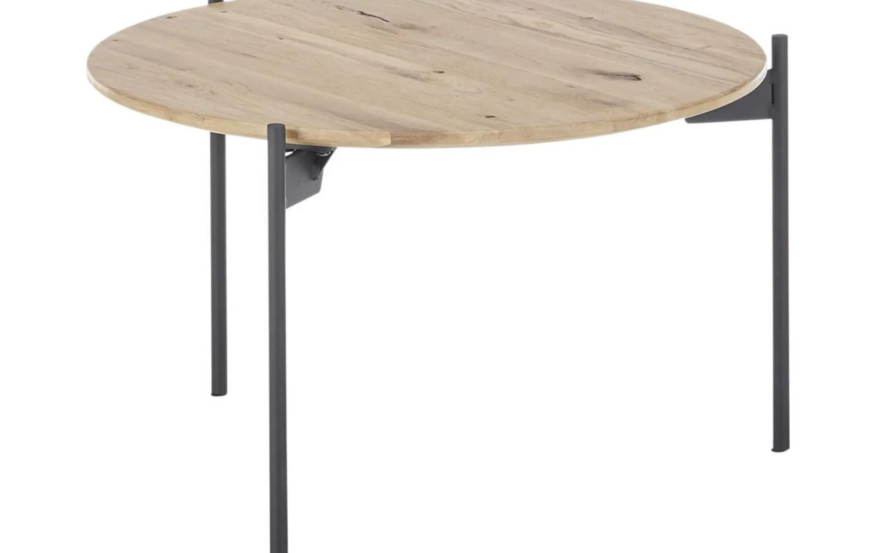 Dieser moderne Couchtisch verbindet natürliche Eleganz mit klarer Formsprache. Die runde Tischplatte aus massivem, geöltem Eichenholz mit markanter Schweizer Kante und durchgehender Lamelle bringt Wärme und Charakter in den Wohnraum. Das schwarze Metallgestell sorgt für einen stabilen Stand und setzt einen stilvollen, zeitgemäßen Kontrast – ideal für moderne Wohnkonzepte.