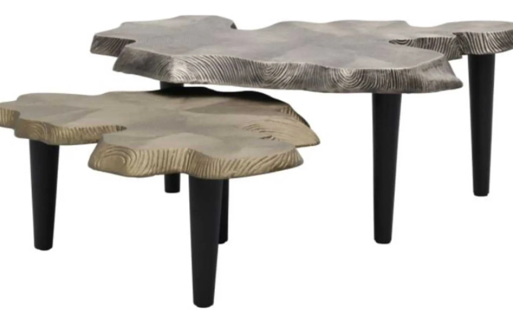 Auf der Suche nach einem schönen Couchtisch? Tische haben eine besondere Form, die an einen Fingerabdruck erinnert. Dieser Tisch besteht aus Aluminium und ist antiksilberfarben. Mit den schwarzen Beinen ist dies eine sehr stilvolle Kombination!