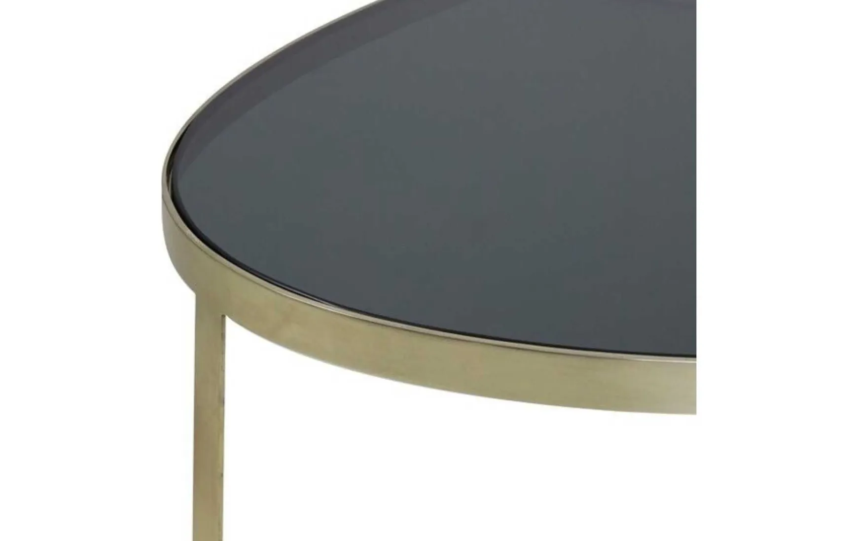 Dieser Couchtisch von ist ein echter Hingucker in jedem Interieur. Der Couchtisch hat eine Tischplatte aus schwarz gefärbtem Glas und ein Gestell aus bronzefarbenem Metall. Dies verleiht dem Tisch ein schickes Aussehen.