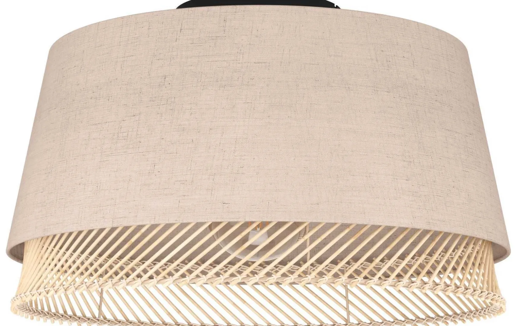 Diese Deckenleuchte ist mit zwei ineinandergesetzten runden Lampenschirmen gefertigt. Die harmonische Kombination aus dem äußeren Leinenschirm in naturfarben und dem inneren Schirm aus einem Bambus-Gitter verleiht der Leuchte einen wohnlichen Look. Im eingeschalteten Zustand wird die natürliche Struktur des Stoffes sichtbar. Die Deckenlampe fügt sich in moderne Einrichtungsstile wie den Nature-Trend ein und bietet eine wohnliche Beleuchtung im Wohnzimmer, Vorzimmer oder Schlafzimmer. Geeignet ist die Leuchte für jedes Leuchtmittel mit E27-Sockel.
