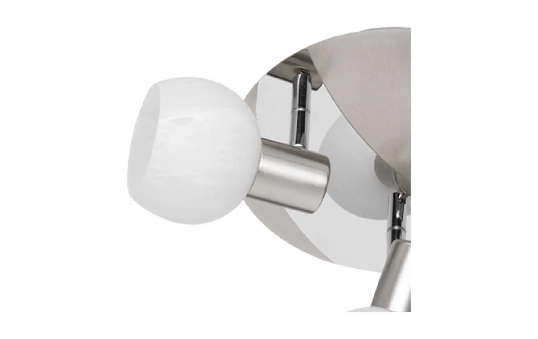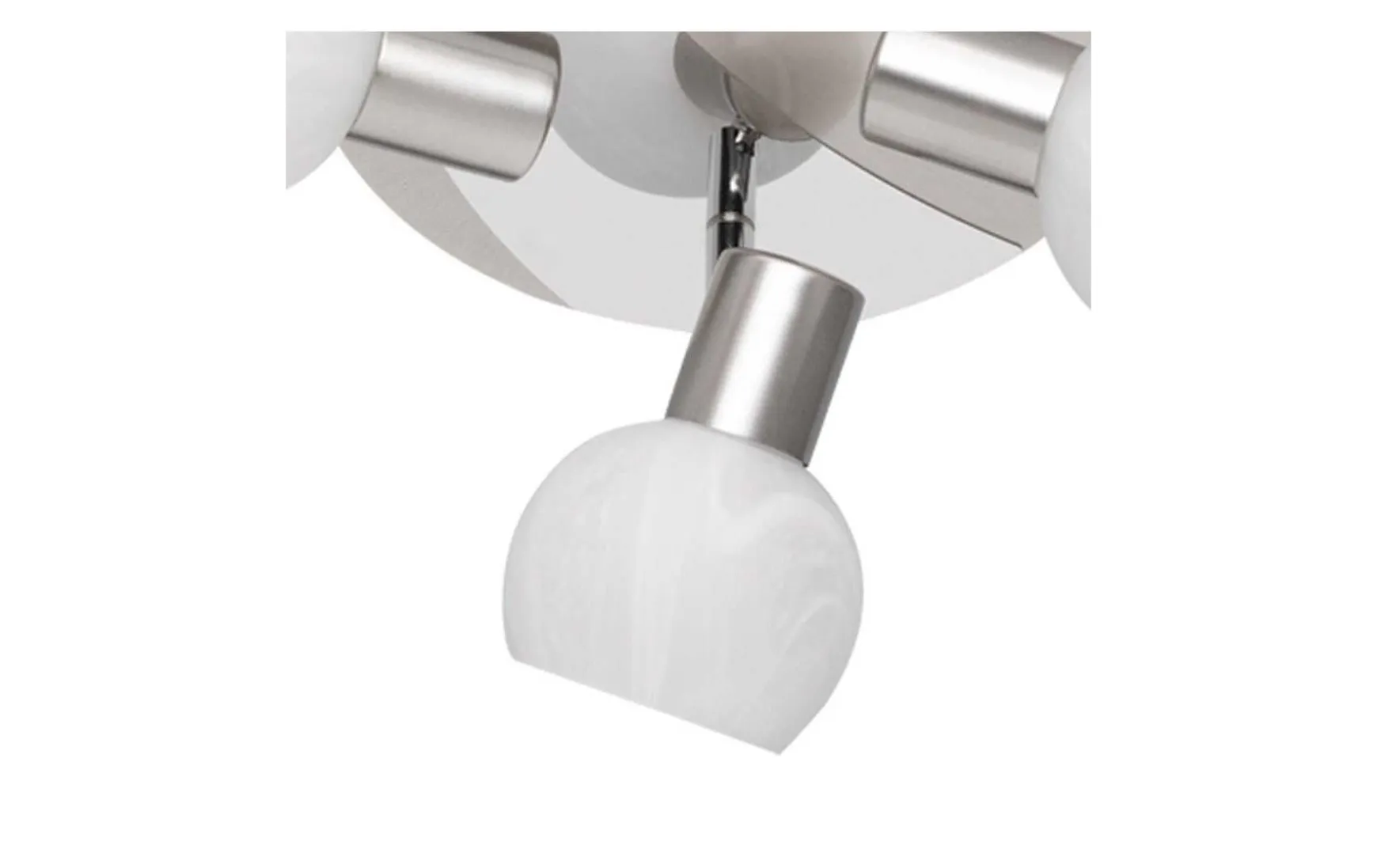 Das schlichte Nickel matt wird durch Chrom-Applikationen und einem Alabasterglas aufgewertet.