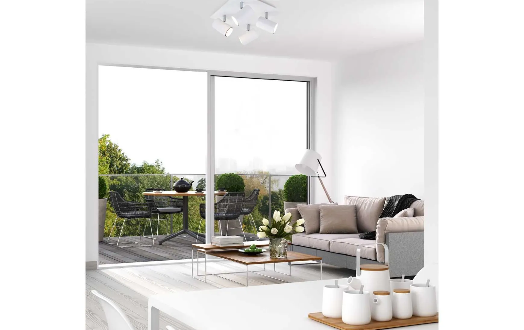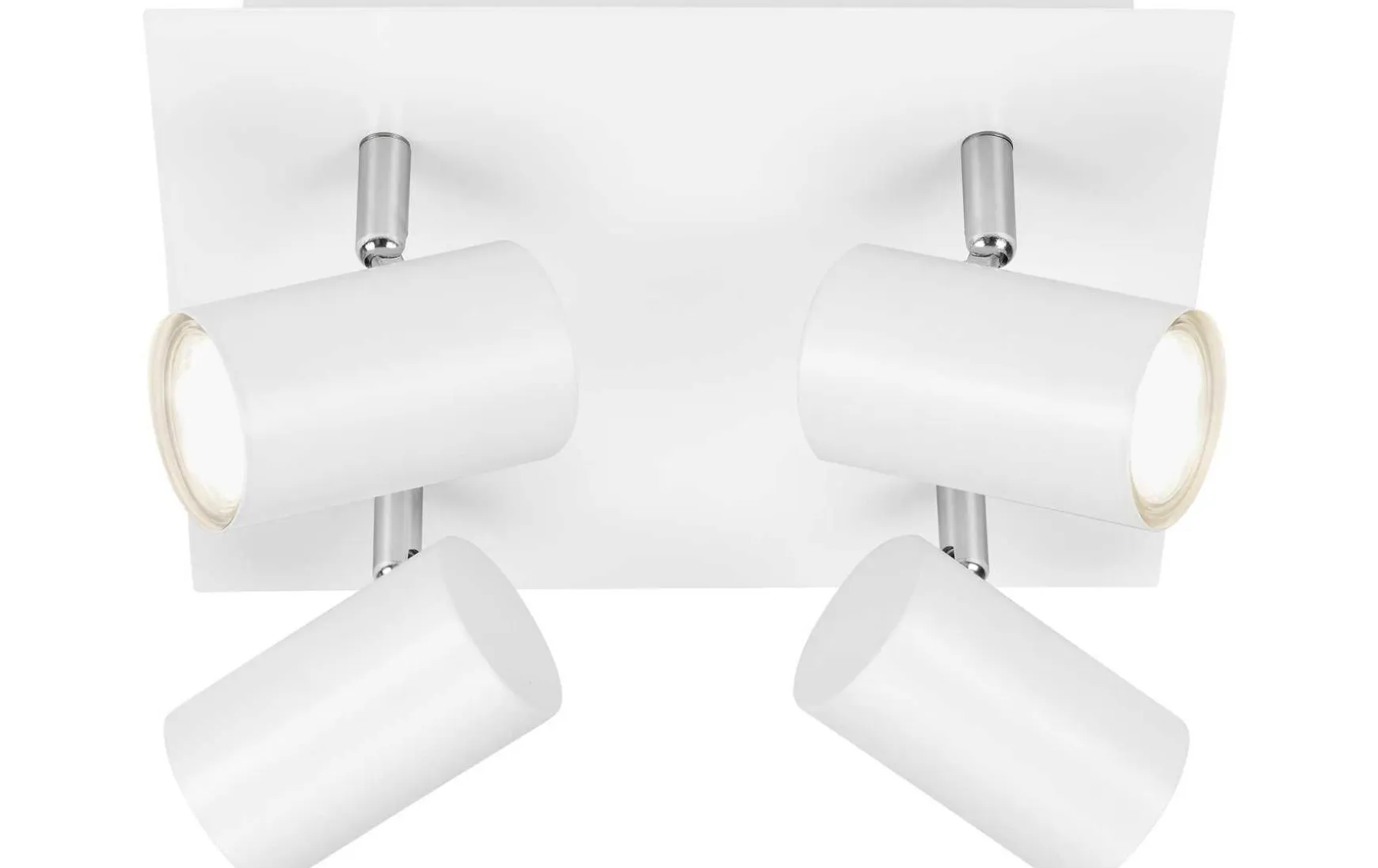 Moderner 4-flammiger Deckenspot in weiß, gefertigt aus Metall. Durch die dreh- und schwenkbaren Spots lässt sich das Licht individuell steuern. Durch ihr elegantes Design ist die Deckenlampe vielseitig einsetzbar, z.B. als Wohnzimmerlampe oder Schlafzimmerlampe