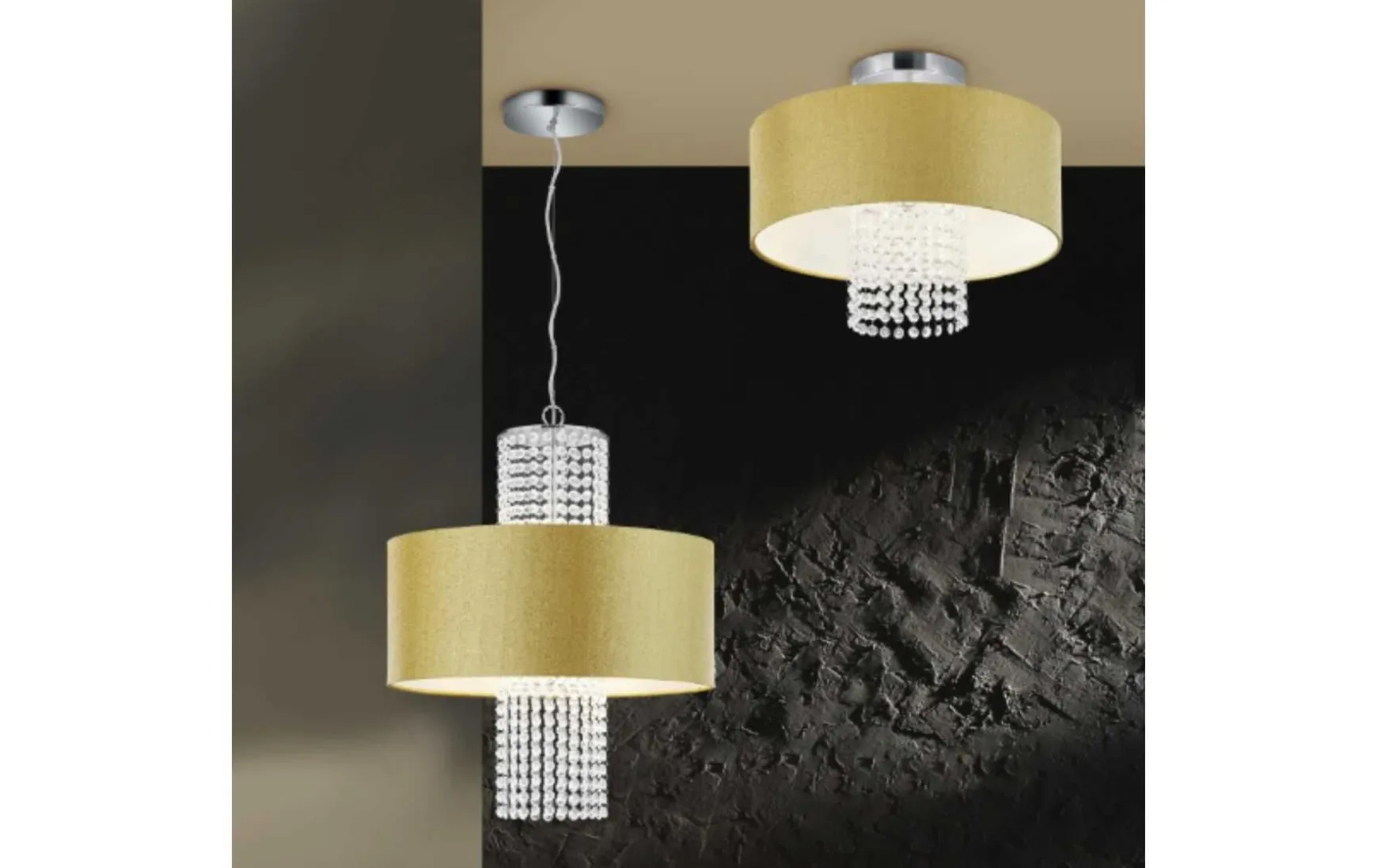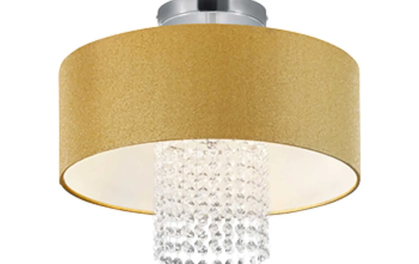 Diese luxuriöse Deckenleuchte zeichnet sich durch ihr einzigartiges Design aus, da die einzelnen Kristalle zu einem echten Hingucker werden. Die Leuchte fügt sich ideal an elegant eingerichtete Wohnräume an, jedoch passt sie sich ebenfalls an schlichte Wohnräume an, da sie direkt den Blick auf sich lenkt. Da sich das Licht in den Kristallen wiederspiegelt, entsteht ein besonderes Lichterlebnis. Der goldfarbige Stoffschirm inklusive dem klaren Acrylbehang und der chromfarbigen Aufhängung verleihen der Deckenleuchte ein elegantes Aussehen. Für eine energiesparende Beleuchtung empfiehlt sich die Verwendung eines LED Leuchtmittels. Diese sind eine optimale Alternative zu herkömmlichen Halogen Leuchtmitteln und stehen für eine hohe Lichtqualität und eine Energieeinsparung von bis zu 80%. Zusätzlich profitieren Sie bei LED Leuchtmitteln von einer langen Lebensdauer, einer geringen Wärmeentwicklung und schonen gleichzeitig die Umwelt